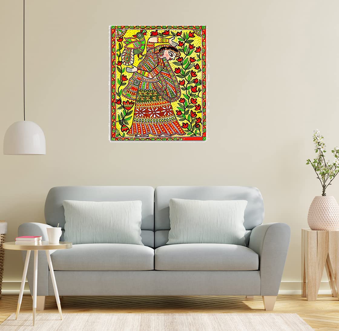 • Madhubani art paintings for wall decoration is exhaustively open to diverse interpretations. Instead these paintings give viewers the occasion to peek into depths of paintings and create a story of it in your mind. Madhubani art believes in not giving a c