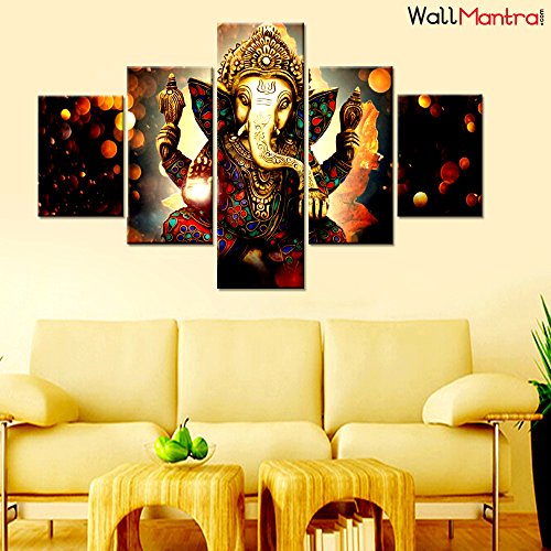 WallMantra Lord Ganesha Wooden Framed 5 Pieces Canvas Wall Painting 36X 24 Inches