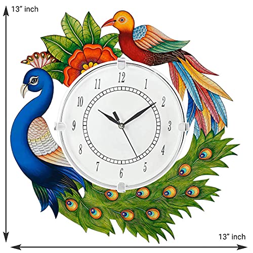 Handpainted wooden wall clock with beautiful design for your living room or bed room. The product is made high quality colors kundan pearls studded decorated on wood along with colour glasses. It is durable and look elegant and feel royal for oneself at home. The clock is aa battery operated. The morden work reflect true style and looks stunning hanging on wall. The product is made by several artist with the specialised skills and supervision.