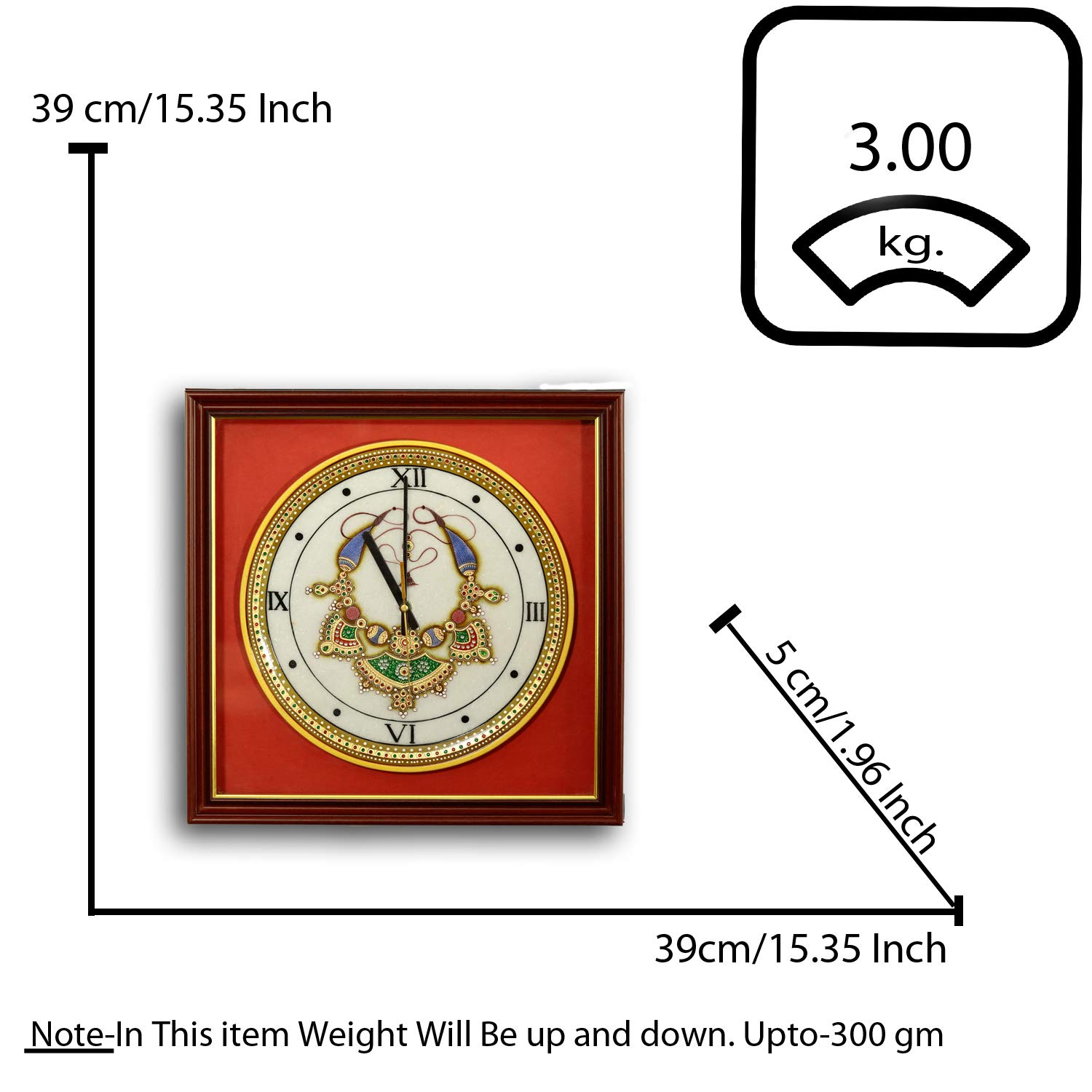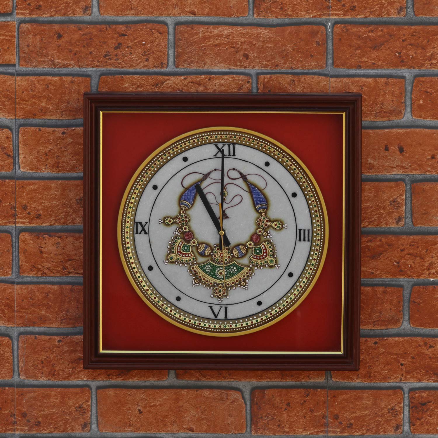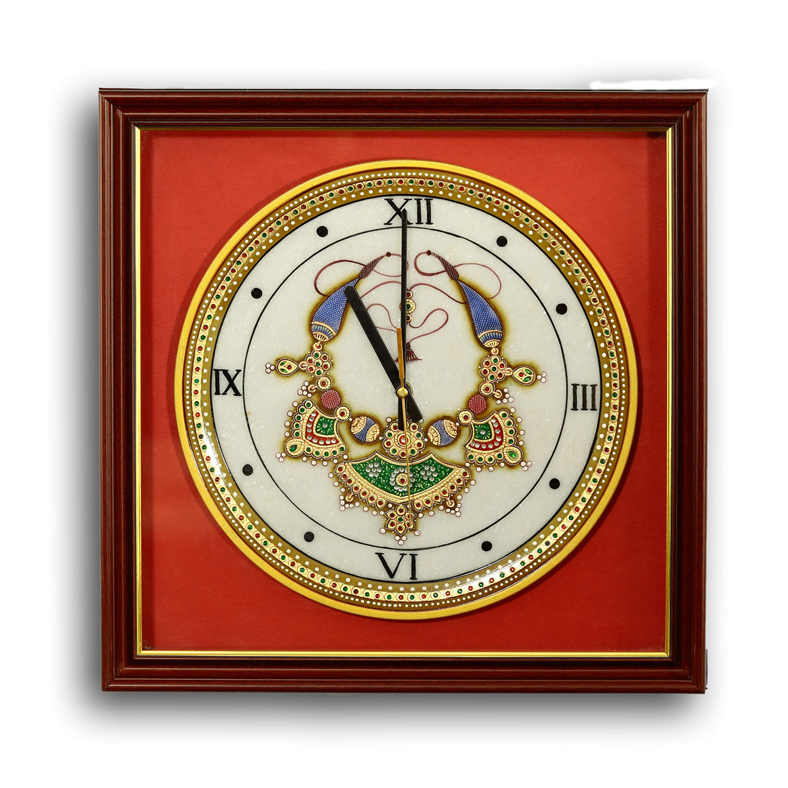 MEENAKARI ENAMEL PRODUCTS Meenakari 22ct Gold Foil Work On Marble Plate Wall Clock 12 Inch (Style 1)