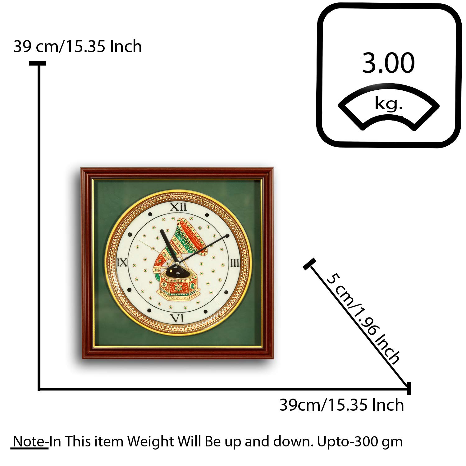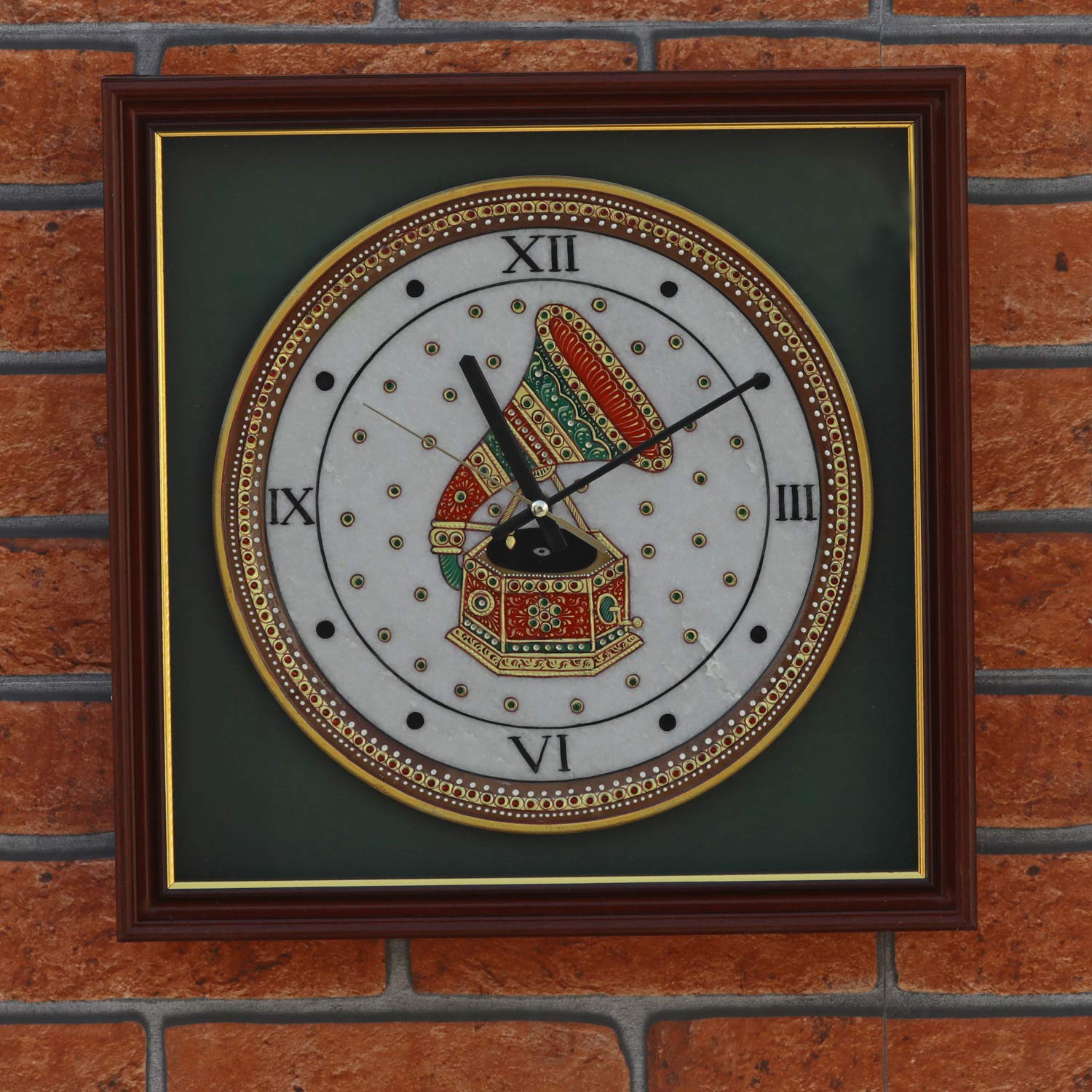 MEENAKARI ENAMEL PRODUCTS Meenakari 22ct Gold Foil Work On Marble Plate Wall Clock 12 Inch (Style 2)