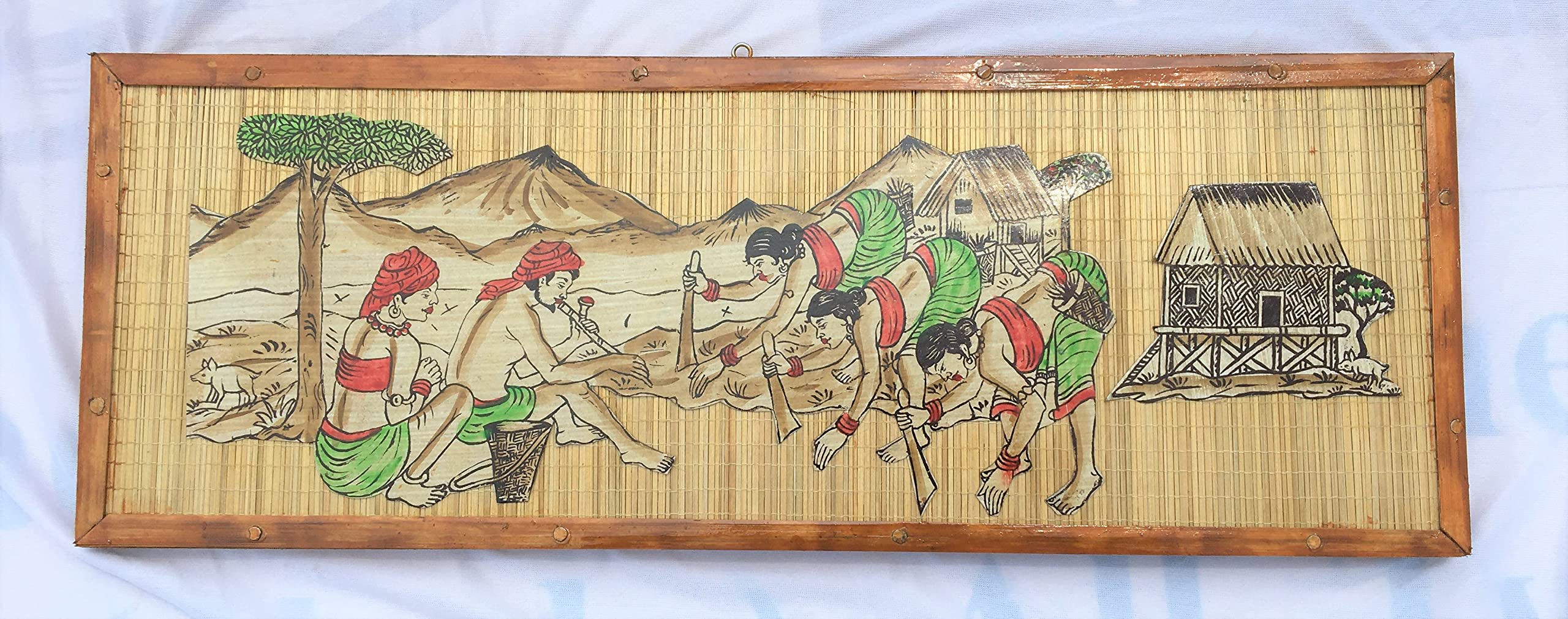 CANE & BAMBOO CRAFTS Farming Scenery Handmade Decorative Wall Panel/Wall Frame/Handmade Wall Panel/Home Dcor/Home Decoration/Handcraft Wall Panel