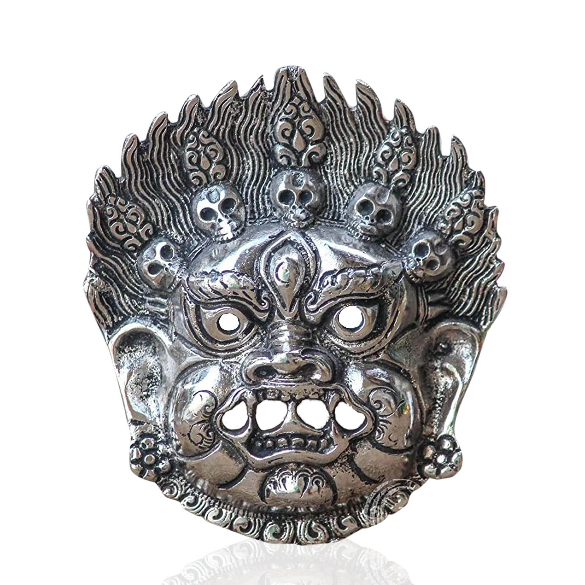 HomeHomeWall AccentsHangingCHURU SANDALWOOD CARVED Metal Mahakal Face Mask Negative Energy Remover Nazar Battu Evil Eye Protector Wall Hanging (6 inch Golden) Medium