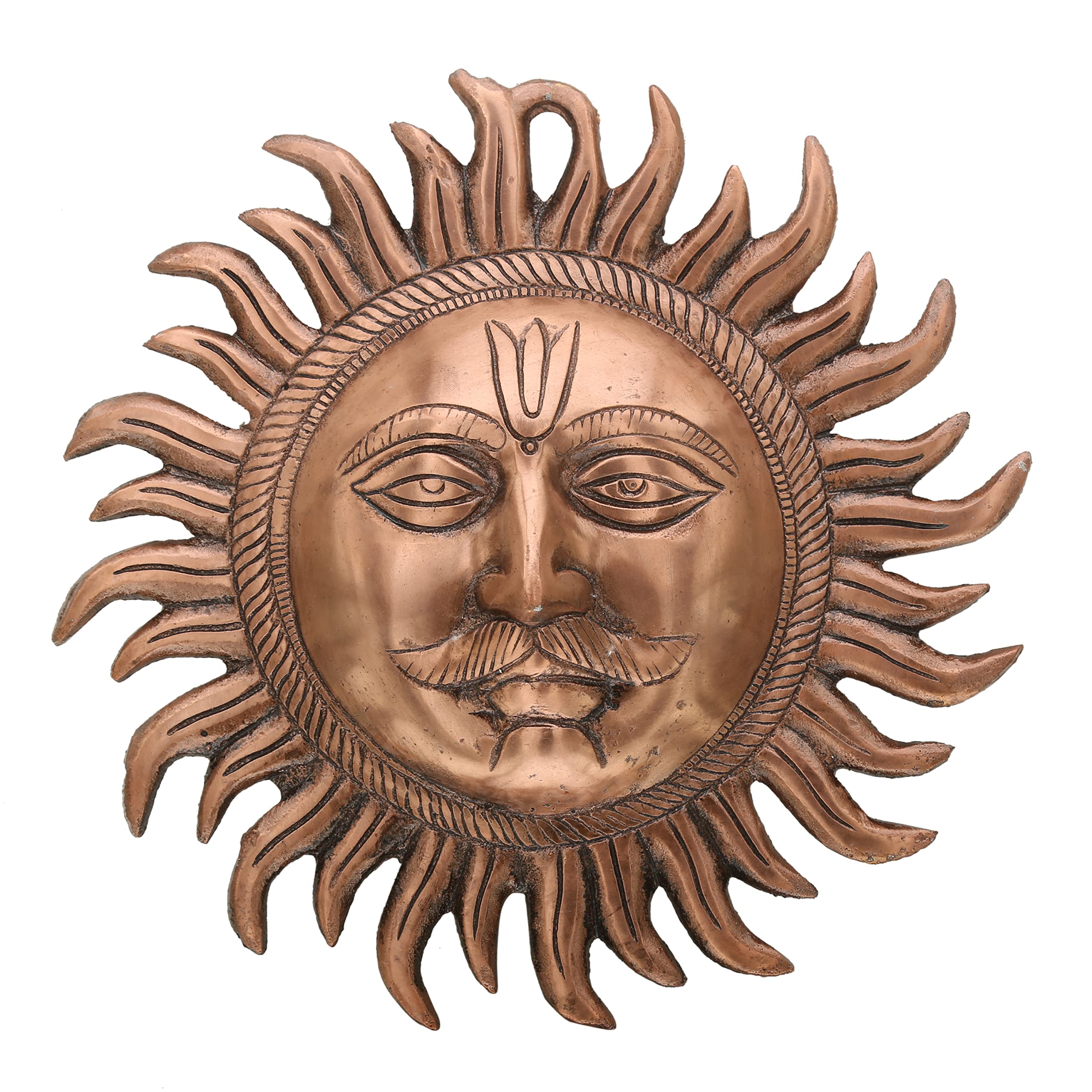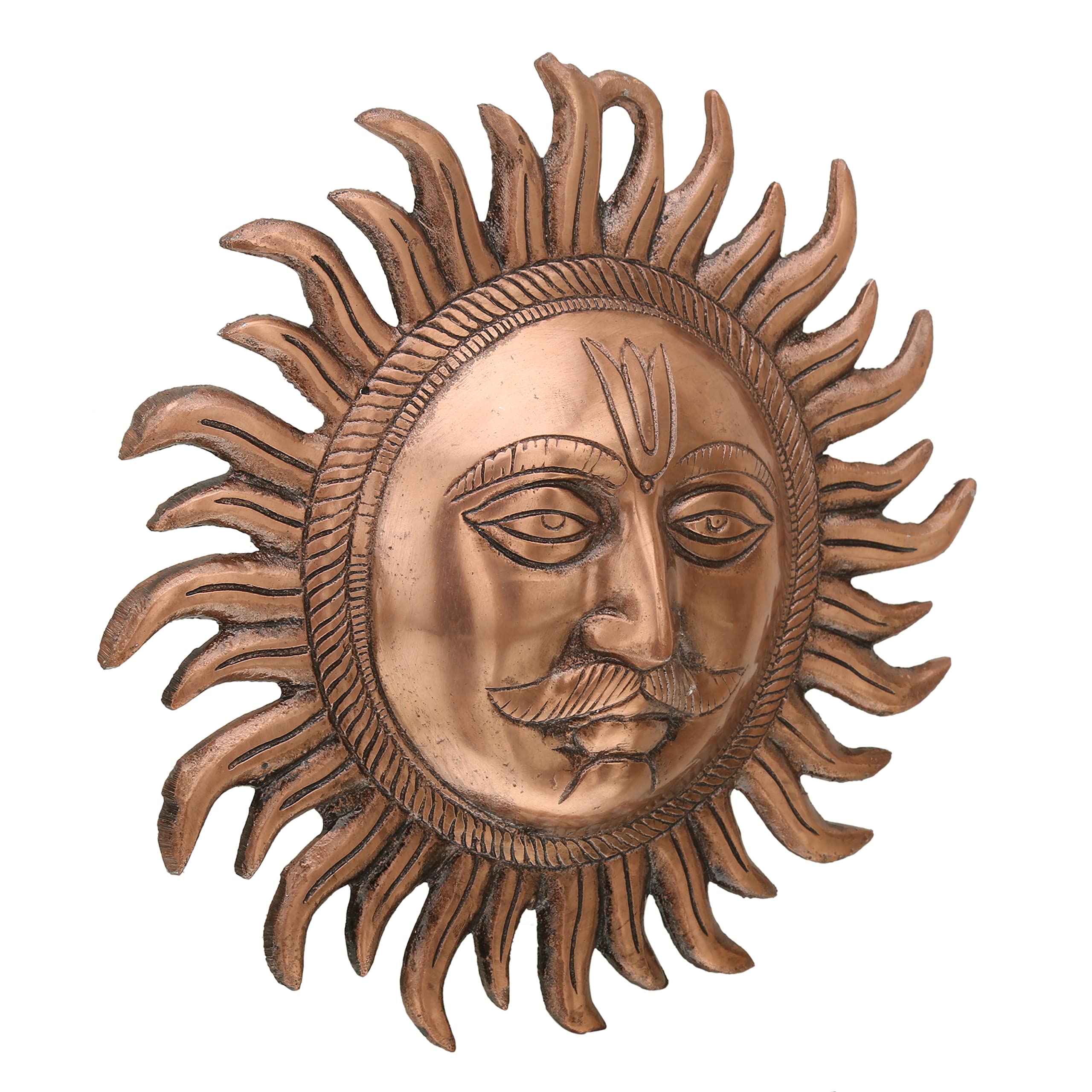 DHOKRA CRAFT Handmade Metal Sun Face Idol Statue Wall Hanging For Positivity & Good Luck (9 inches) Brown