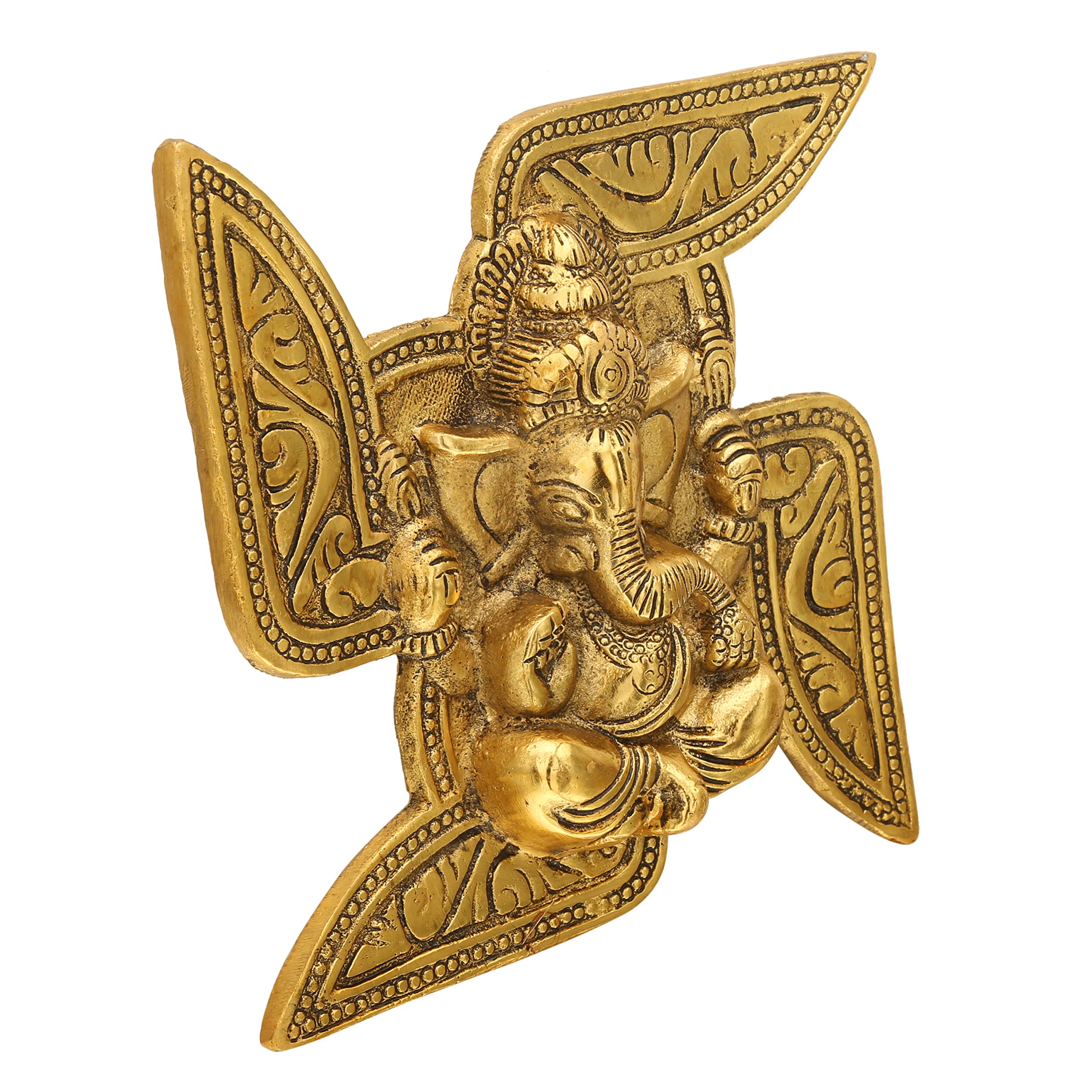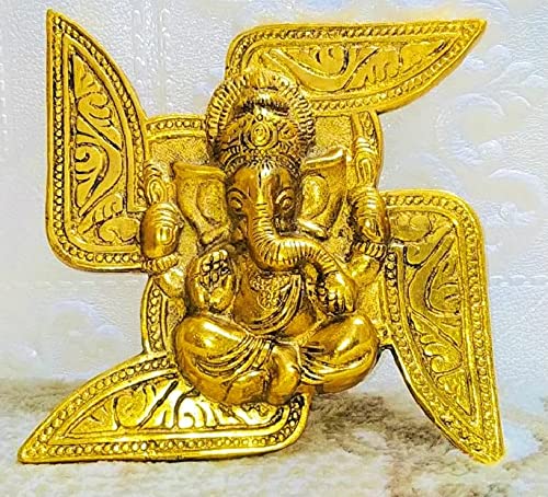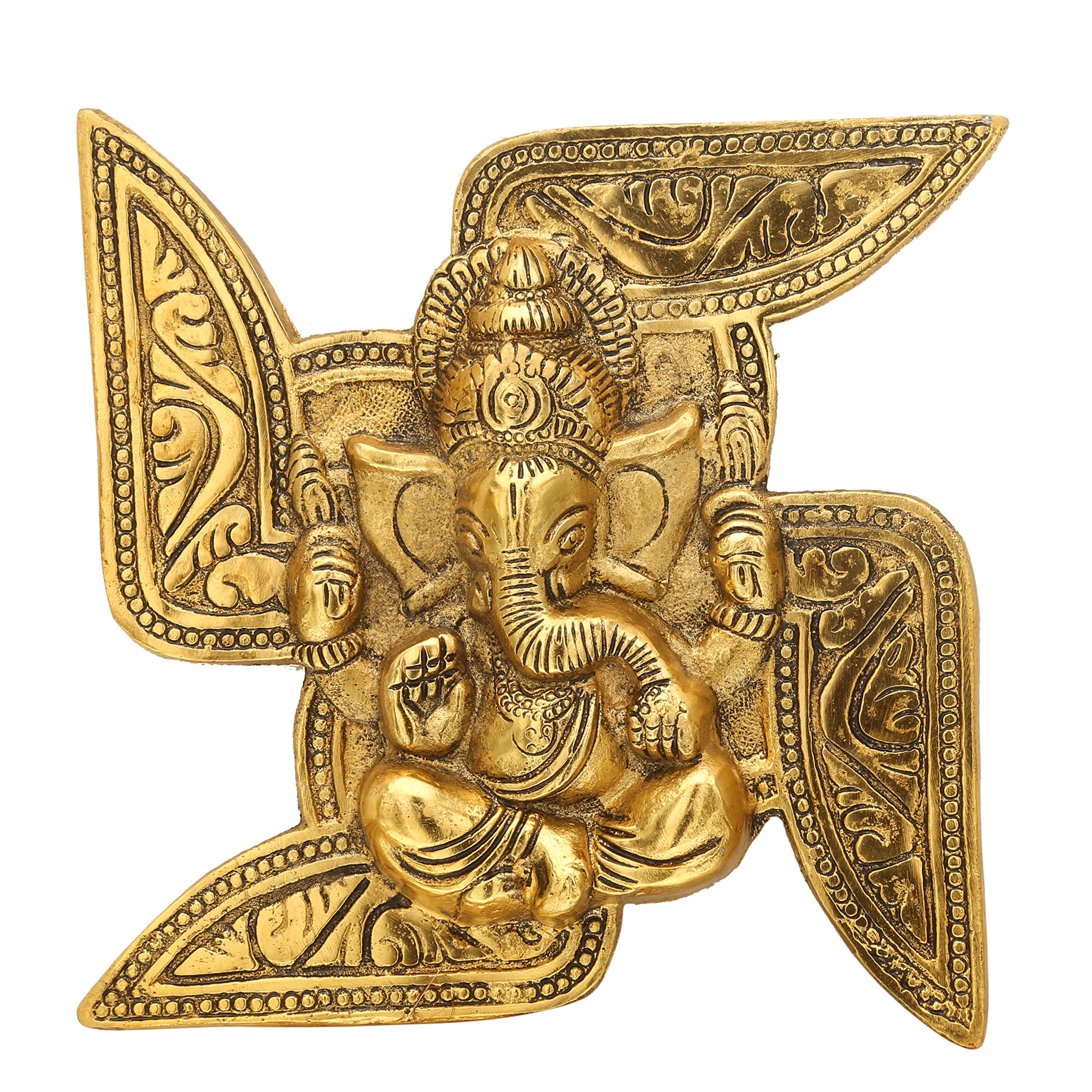 The metal Ganesha wall hanging sitting on Swastik will bring good luck & prosperity to you place.