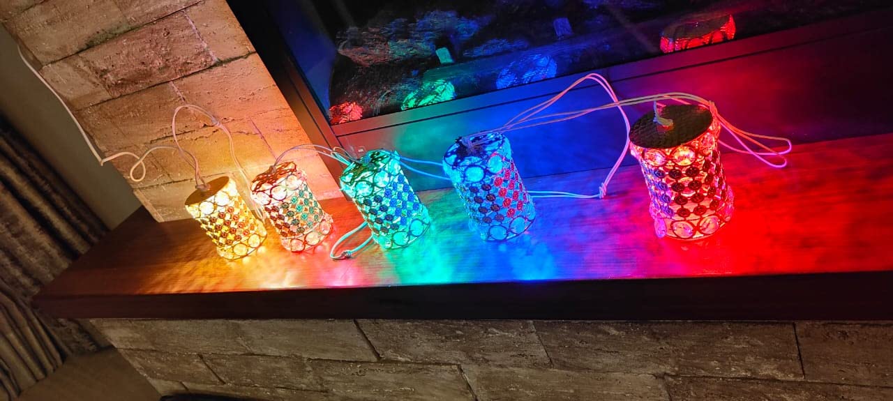 5 Cylinder Shape Toran LED string lights, Low voltage and ul Listed power supply, directly plug in and unplug for power on and off, Product Dimension- 5.5x5.5x9 cm Each Set of 5 Pcs, Indoor and outdoor use: Great for decorators & DIY crafters. Light up weddings, parties, camping,christmas tree,centerpieces, wreaths, For home Decoration on Diwali, Easy to Use,Can be Used in Many Occasions,Such as Christmas,Halloween,New Year,Valentine's Day,Holiday Party,Wedding,Camping,or Just for Everyday Use.These Lights Can be Used in the Christmas tree,the Hall,Bedroom,Stair,Corridor,etc, Easy to Use