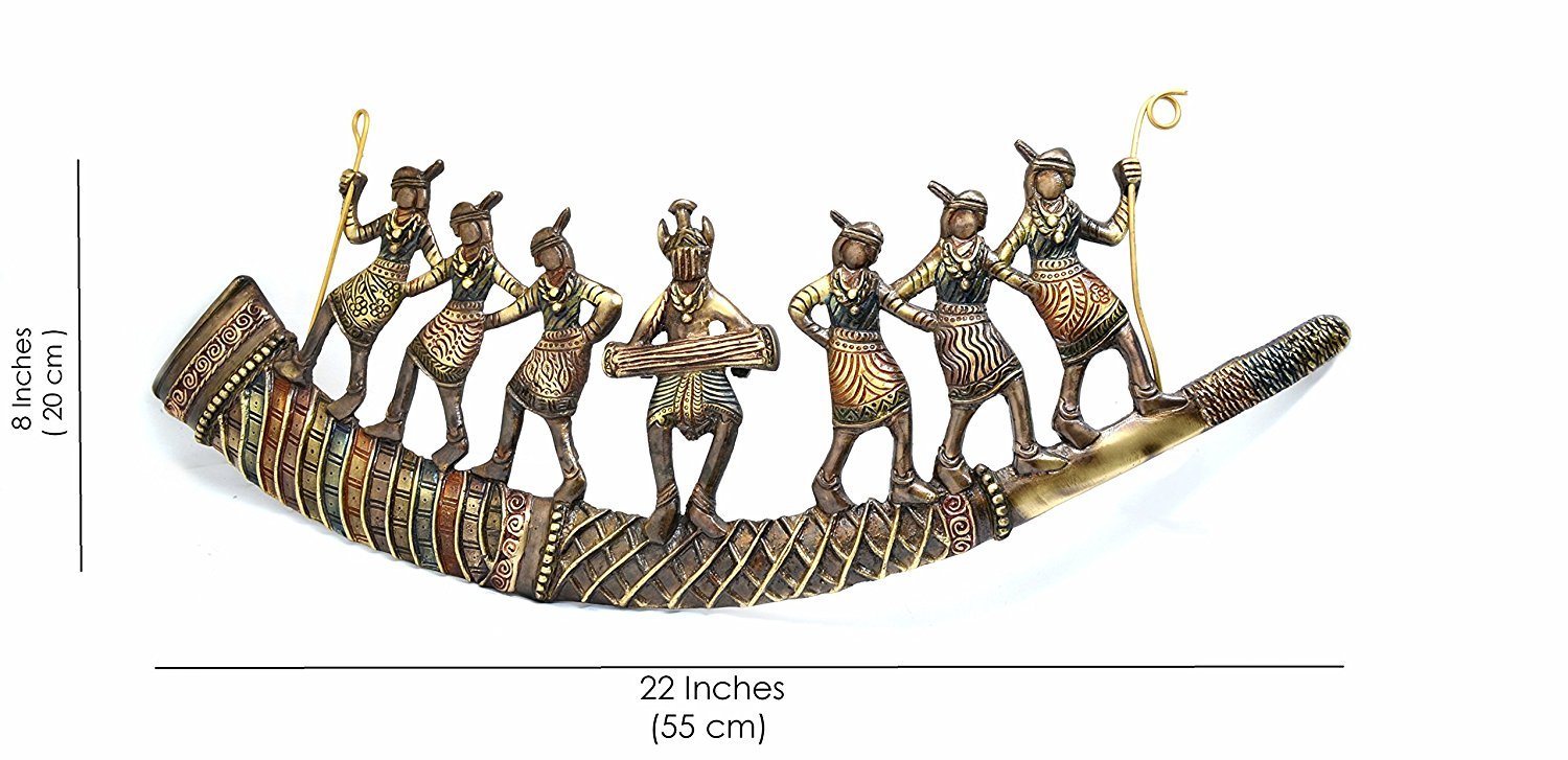 Enlighten your walls with this wall hanging of "dancing tribals on shehnai" made from pure brass which reflects the artistic brilliance and adds elegance to your wall decor. Style your home and office with this iron wall hanging sure to be admired by your guests and visitors. It serves as a great gift especially around house warming ceremonies religious celebrations and festivities. This wall hanging has been made by proficient artisans from the house of JAIPUR STONE WORK using various traditional techniques.