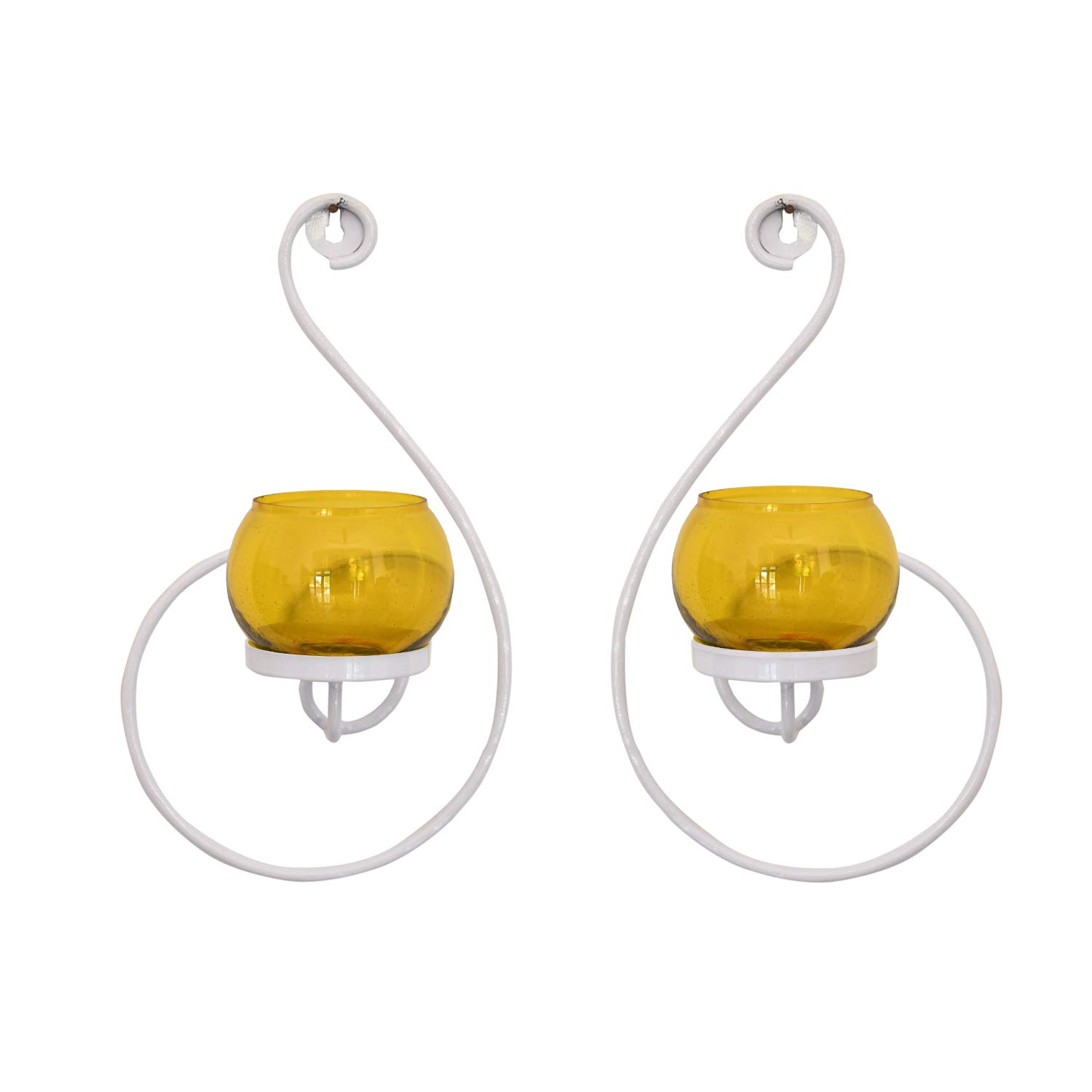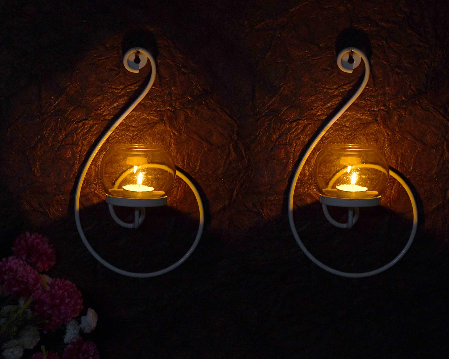 RAJASTHANI METAL HANDICRAFTSWall Hanging Tea Light Candle Holder Metal Wall Sconce with Glass Cups and Tea Light Candles for Christmas Lights for Home Decoration- (Set of 2- Yellow)