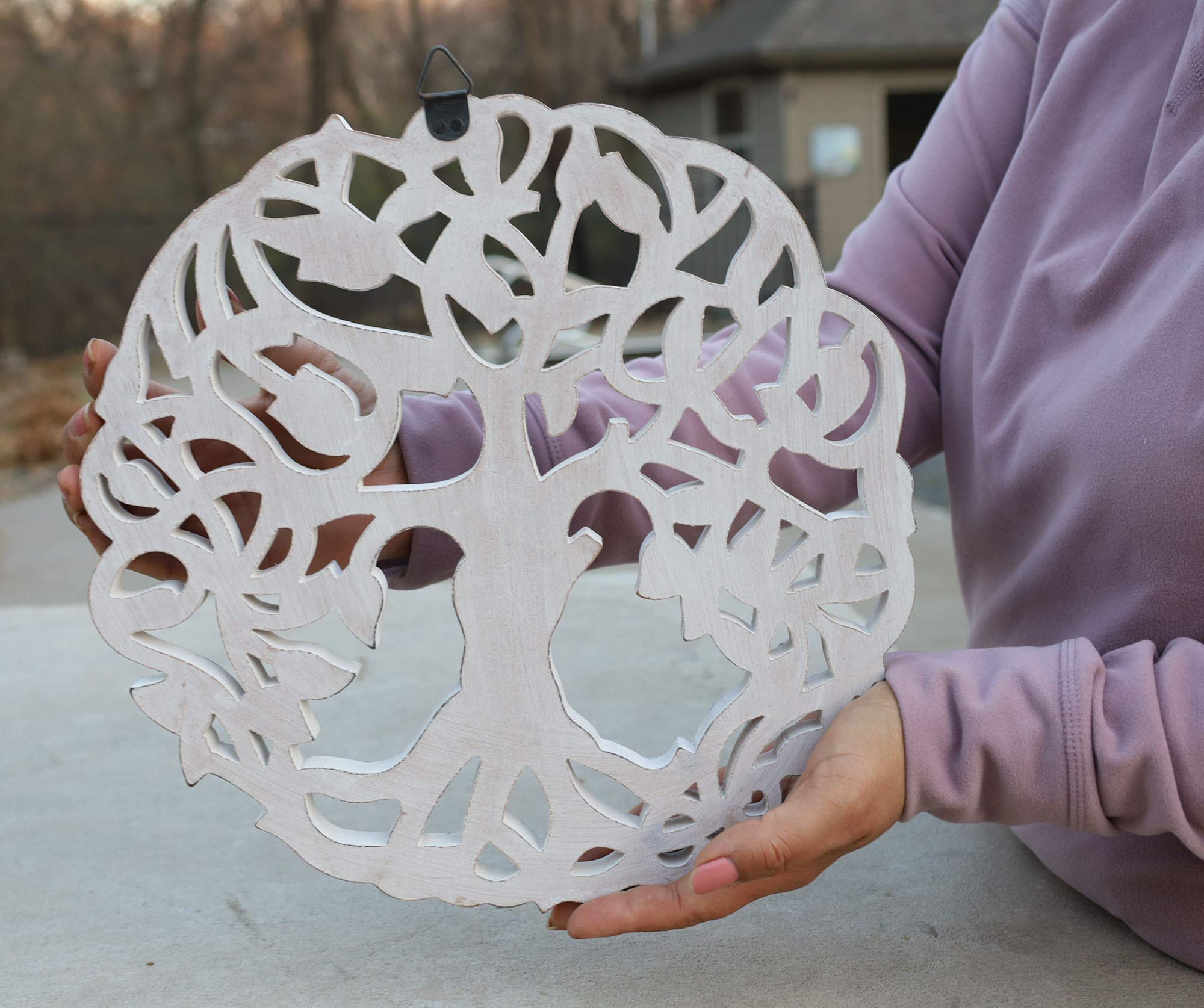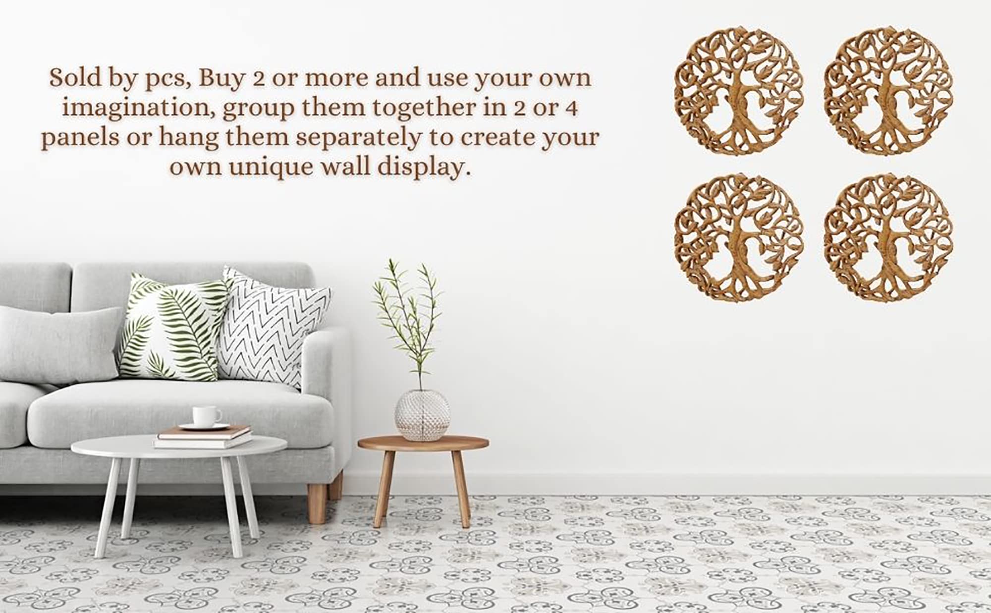 TIBETAN RITUAL CURTAIN Handcrafted Wooden Celtic Tree of Life Wall Decor Hanging Art (White)