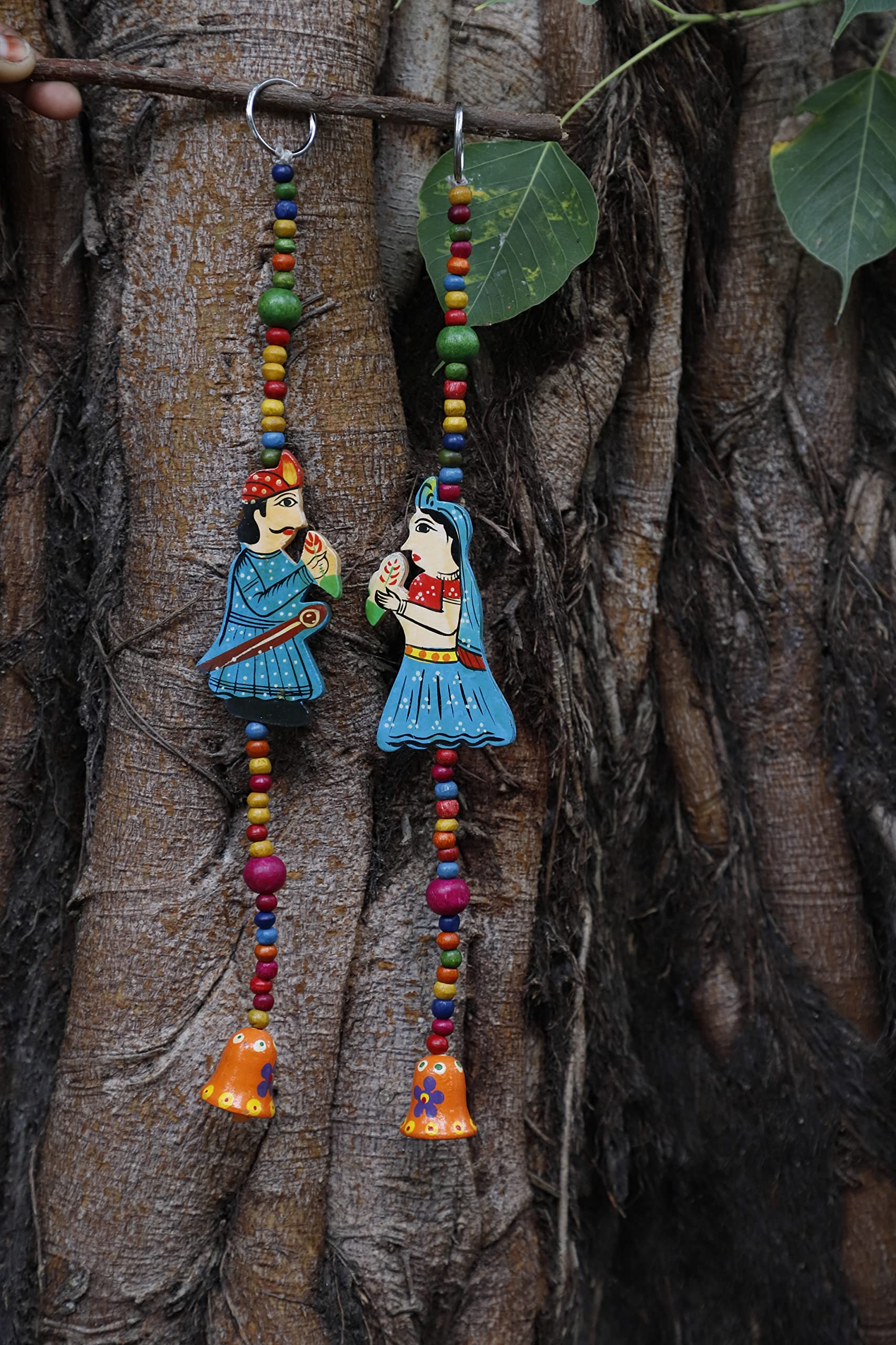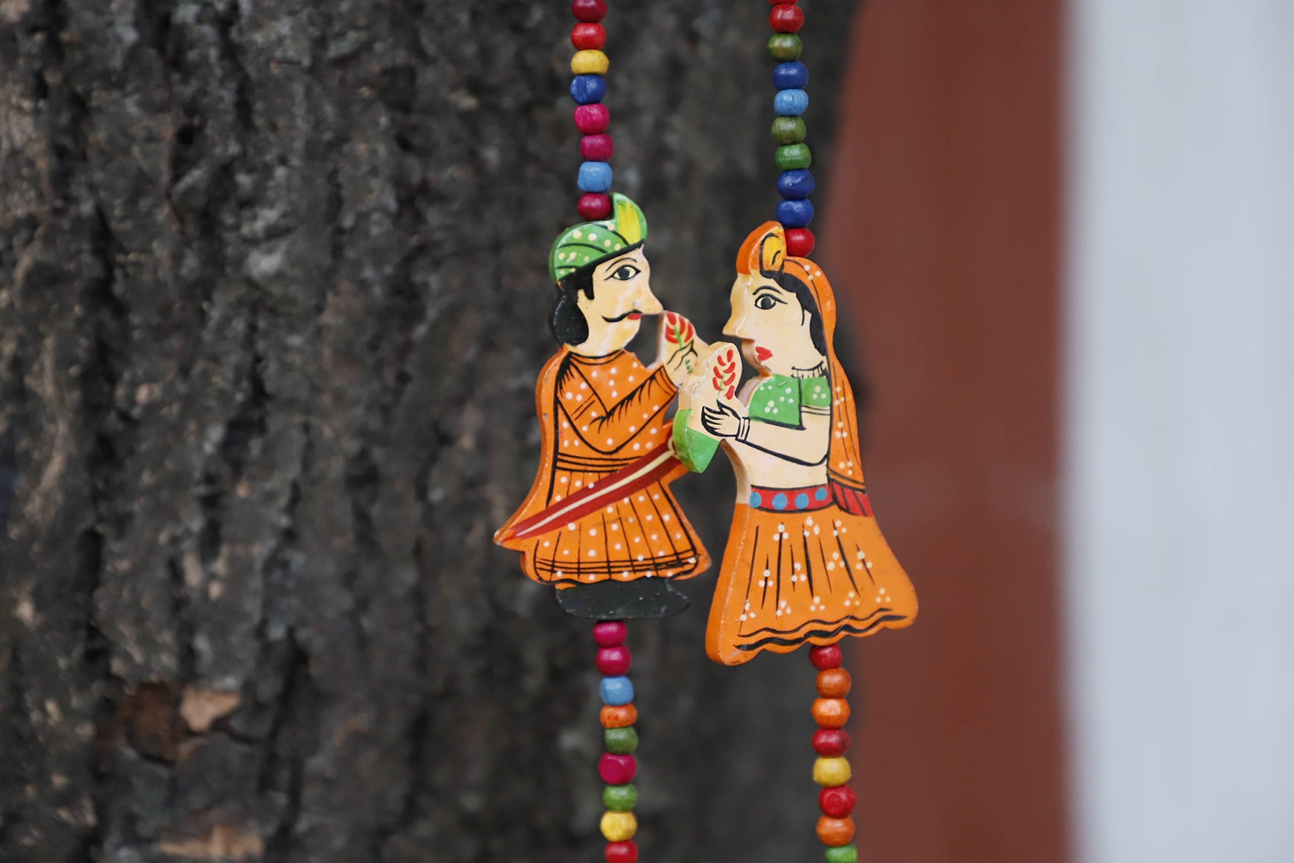 wooden hanging pair Wooden Raja Rani pair Diwali Navratri return gift bulk order Navratri wedding return gift. Torans are traditional decorative hangings that can be hanged on doors as well as walls and can be used on many occasions like Pooja Festivals Housewarming Parties Marriages and inaugurations etc. An effortless way to add luster to your festive gala. These door hangings are perfect for creating a grand look for your door A symbol of happiness and charm. Unique Design Traditional Look Easy to Clean Durable Auspicious Economical This Artistically Handcrafted Auspicious Bandan war Toran door hanging decorated with colorful wooden beads and wooden Raja Rani wall hanging in door decorations or main doors