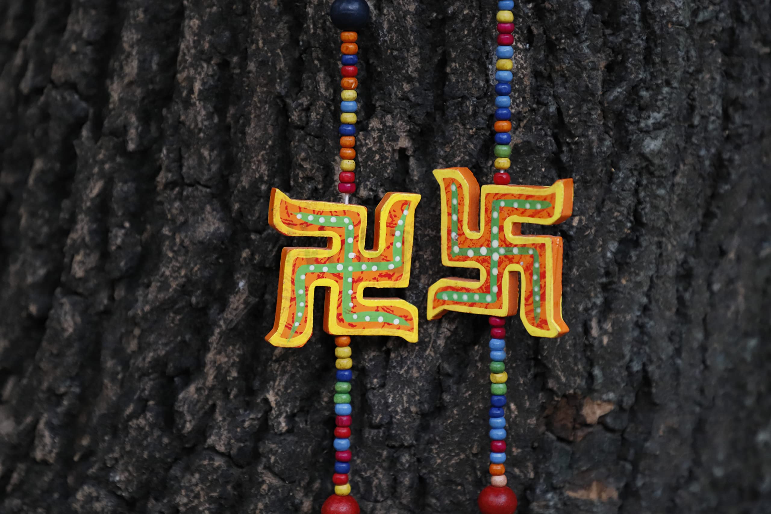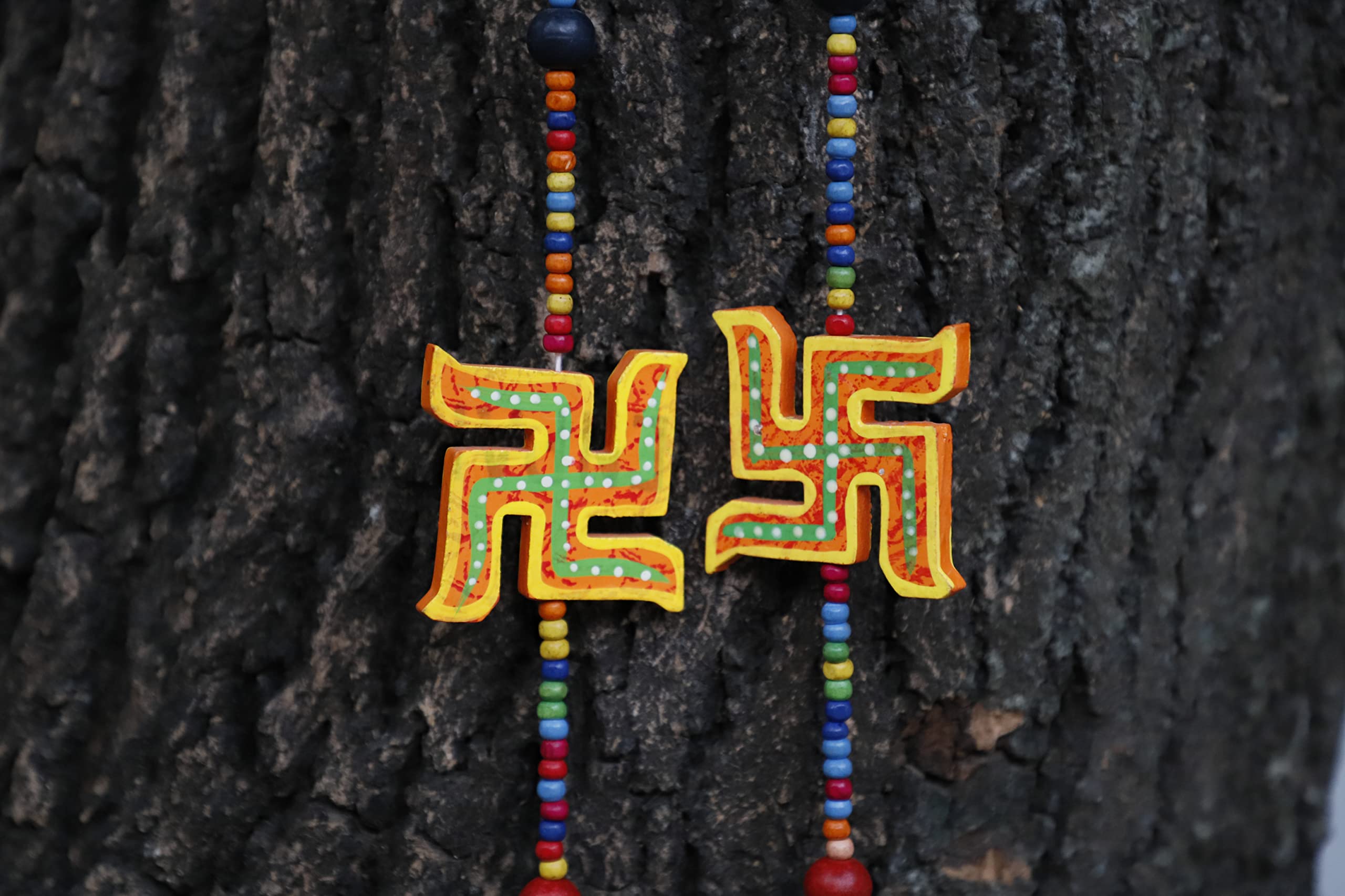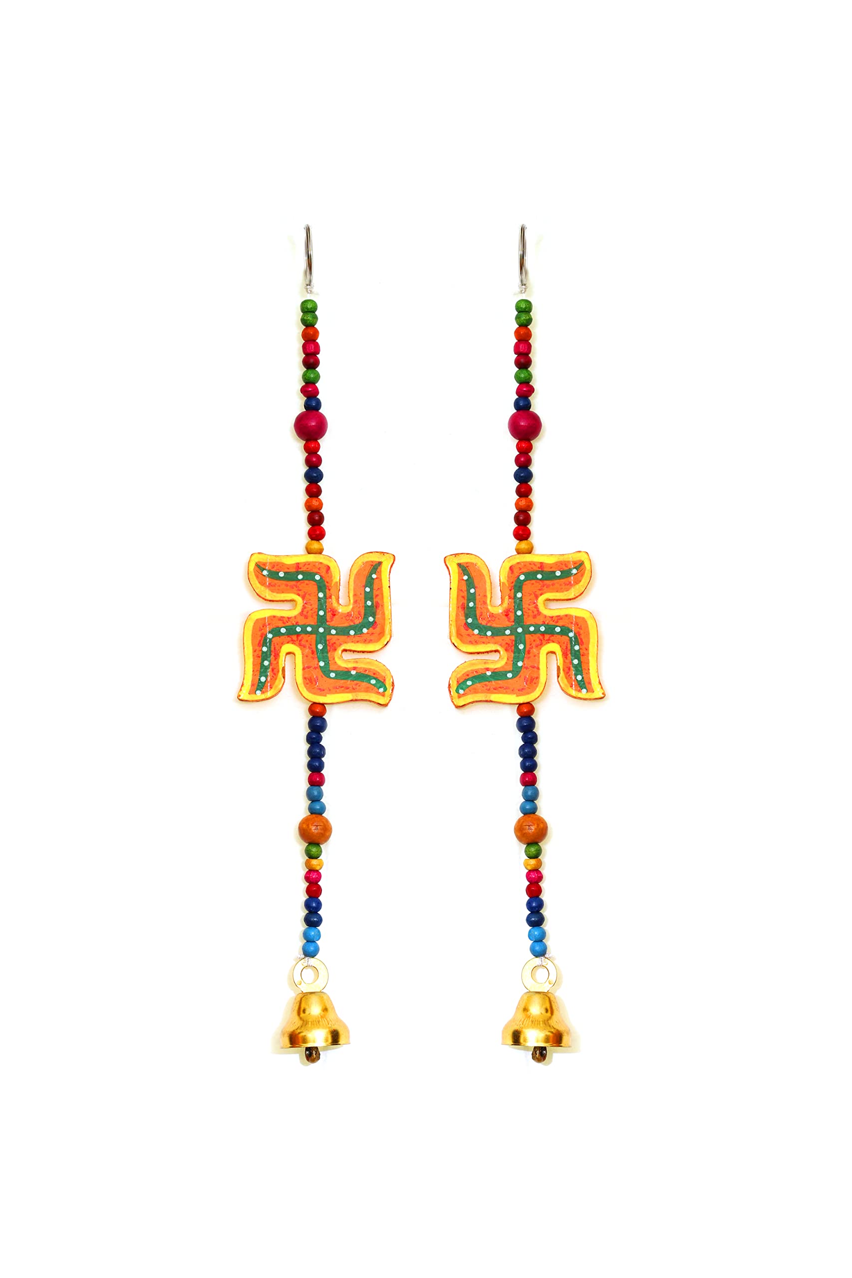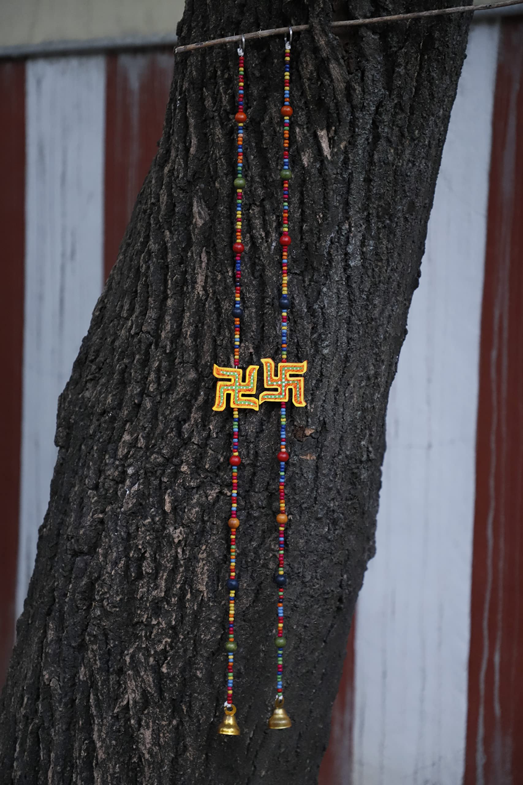 Torans are traditional decorative hangings that can be hanged on doors as well as walls and can be used on many occasions like Pooja Festivals Housewarming Parties Marriages and inaugurations etc. An effortless way to add luster to your festive gala. These door hangings are perfect for creating a grand look for your door A symbol of happiness and charm. Unique Design Traditional Look Easy to Clean Durable Auspicious Economical This Artistically Handcrafted Auspicious Bandan war Toran door hanging decorated with colorful wooden beads and wooden Elephant face in center is perfect for door decorations or main doors
