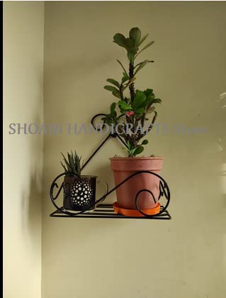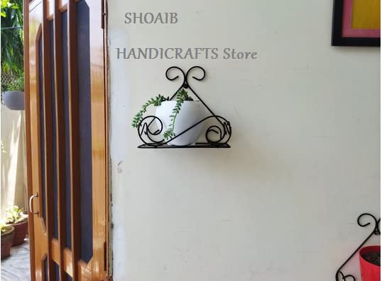 SHOAIB HANDICRAFTS Store Iron Wall Mounted Hanging Plant Stand Flower Pot Stand for Home Living Drawing Room Indoor Outdoor Balcony Terrace Wall Hanging Planter Stand Set of 1 Black