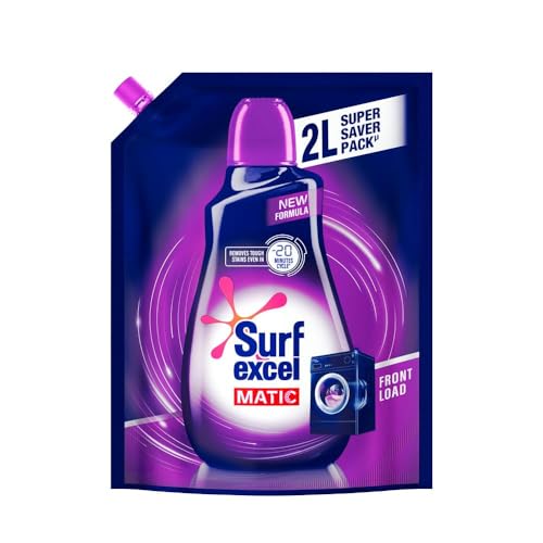 Presenting Surf Excel Matic Front Load Liquid Detergent - a revolutionary liquid detergent for Front load washing machines. Being liquid it is best suited for washing machines and ensures a superior laundry experience. Surf Excel Matic Front Load Liquid Detergent is specially made for your Front Load washing machine and gives you tough stain removal in machines. Surf Excel Matic Front Load Liquid Detergent is effective in the high-water level environment (20 litres) of your Front load washing machines and dissolves completely ensuring it leaves no residue in your machine or your clothes. Surf Excel Matic Front Load Liquid Detergent is a one of its kind detergent liquid whose cleaning action and superior fragrance is much sought after. Surf Excel matic liquid with a powerful cleaning technology penetrates stains faster and removes tough stains in machines itself. Try Surf Excel Matic Front Load Liquid Detergent for your Front Load machine for a superior cleaning experience. This Surf Matic Front Load Liquid Detergent Pouch 2L pack is a refill pack & the liquid in the pouch needs to be poured into an empty 1ltr Surf Matic Liquid Detergent Bottle. You can use the scrubber cap (of the bottle) to measure a cap-full of the liquid for 1 load & 1.5 Cup for heavily soiled loads in your Front Load Washing machine