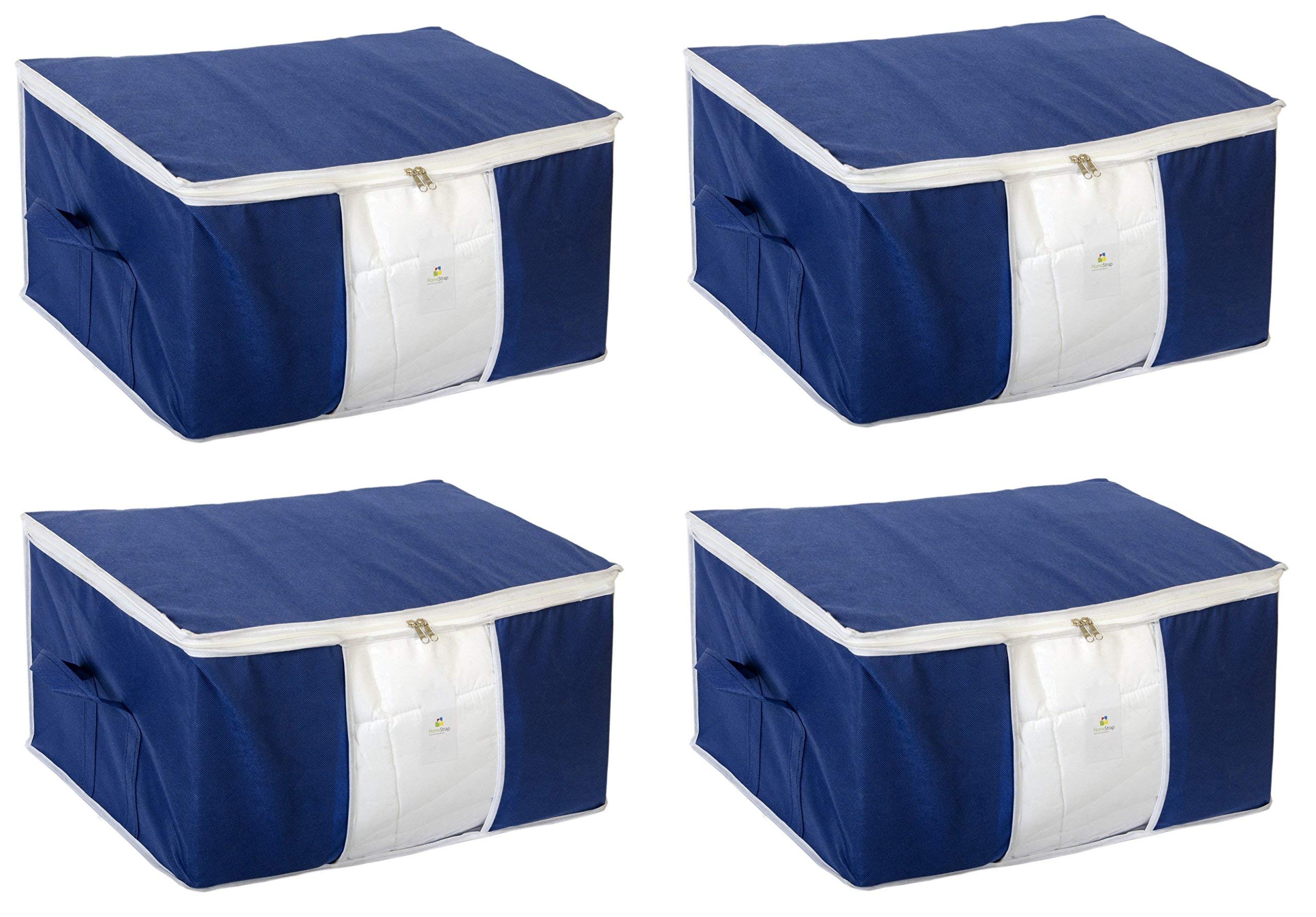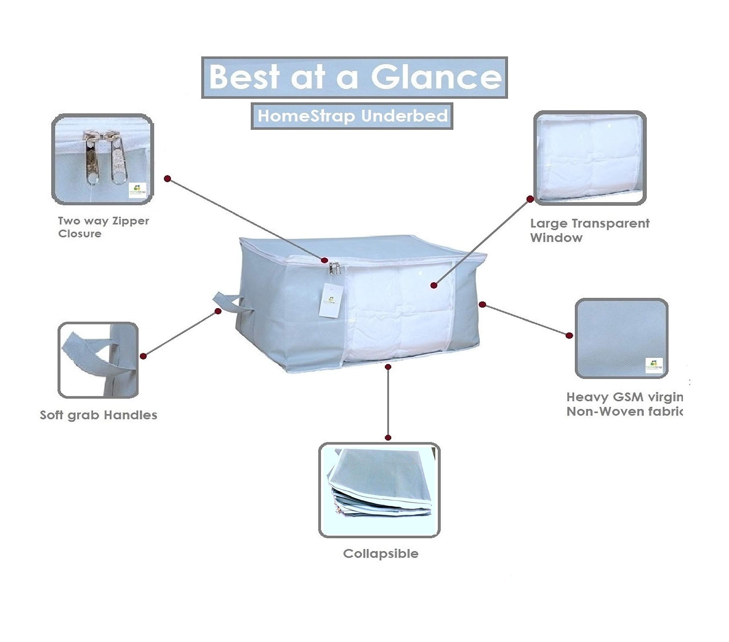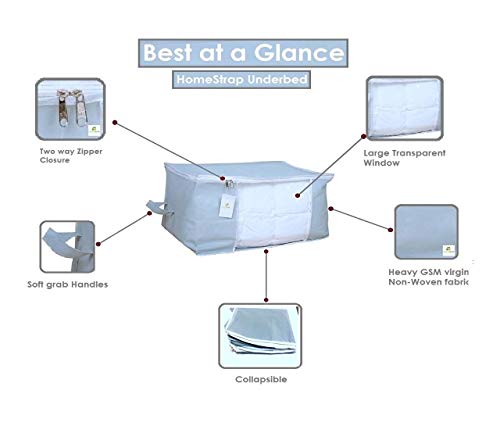 It's made of recyclable soft non woven fabric with two way zipper closure to keep contents safe and secure. Neatly keep your off season clothing or spare linens in our underbed storage bag for easy out of the way storage. The double zipper ensures ease of usage and keeps the content protected from pests and dirt. The soft grab handles makes it easy to pull out or replace from under the bed and the large transparent window design lets you see what is inside just at a glance. Fold and stow away when not in use. Create a space beyond space!!