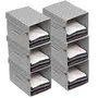 Homestrap Non Woven Fabric shirt stacker helps you to arrange and organize your shirts and clothes systematically and neatly in your wardrobe. The hard engineered base helps it to retains its shape and keeping your wardrobe well organized. As the shape of this shirt stacker is retained it further helps you to keep your clothes wrinkle-free. Homestrap shirt stacker is completely collapsible when not in use hence easily storable. Homestrap's range of wardrobe organizer helps you save and create more space in your wardrobe to store all your favorite clothes and accessories.Specs:Product Name: Wardrobe Organizer to store all your shirts and clothes neatly and systematicallyMaterial: Made from heavy Non-Woven Fabric to make it more durable & Classy & Hard Plastic Board inside to make stiff sturdy & to retain its shape.Dimension: Size in Inches: (W)9.5 (L)16 (H)9.5Design: PrintedFeature:Deep storage can make easy to keep shirt trousers & long cloths to put with less foldingCover with a Heavy Top Lid to take Weight of another Stacker. Open Top lid easily to place Shirt openly. Save and create more space in your wardrobe by arranging your clothes systematically Collapsible when not in use.