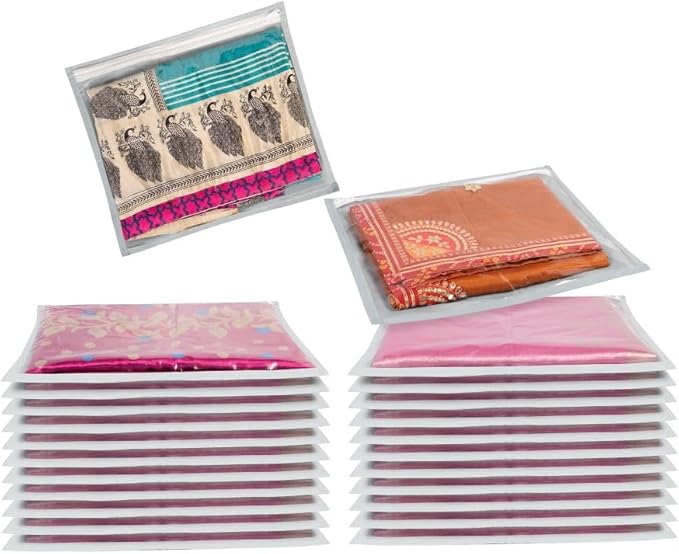 HomeStrap Brings an innovative Home storage solution for all your storage problems. Saree covers for your convenience. It is the perfect solution to keep expensive sarees and other garments in one bag to avoid dust insect and moisture. Transparent plastic view from the front for your sarees. It is made with good quality Fabric with clear Thick plastic Top for inside view It is provided with anti-slide zipper - making it lightweight and durable. Every wedding and the festive season finished you need to organize the off-season sarees into your closet or under-bed if you put the sarees in the closet or under bed directly they may look dirty when you wear them in next season the saree bags will protect your sarees and keep them clean. These saree bags Organizing your suitcases or travelling bags is therefore very easy. Keep your sarees in these storage bags and stack them neatly in your cupboard which can protect your sarees from dust This could be a perfect home to bedsheet regular cotton or silk sarees Lehenga garment suit heavy wedding saree single saari blouse dress shirt t-shirt coat blazer baby Kids toys.
