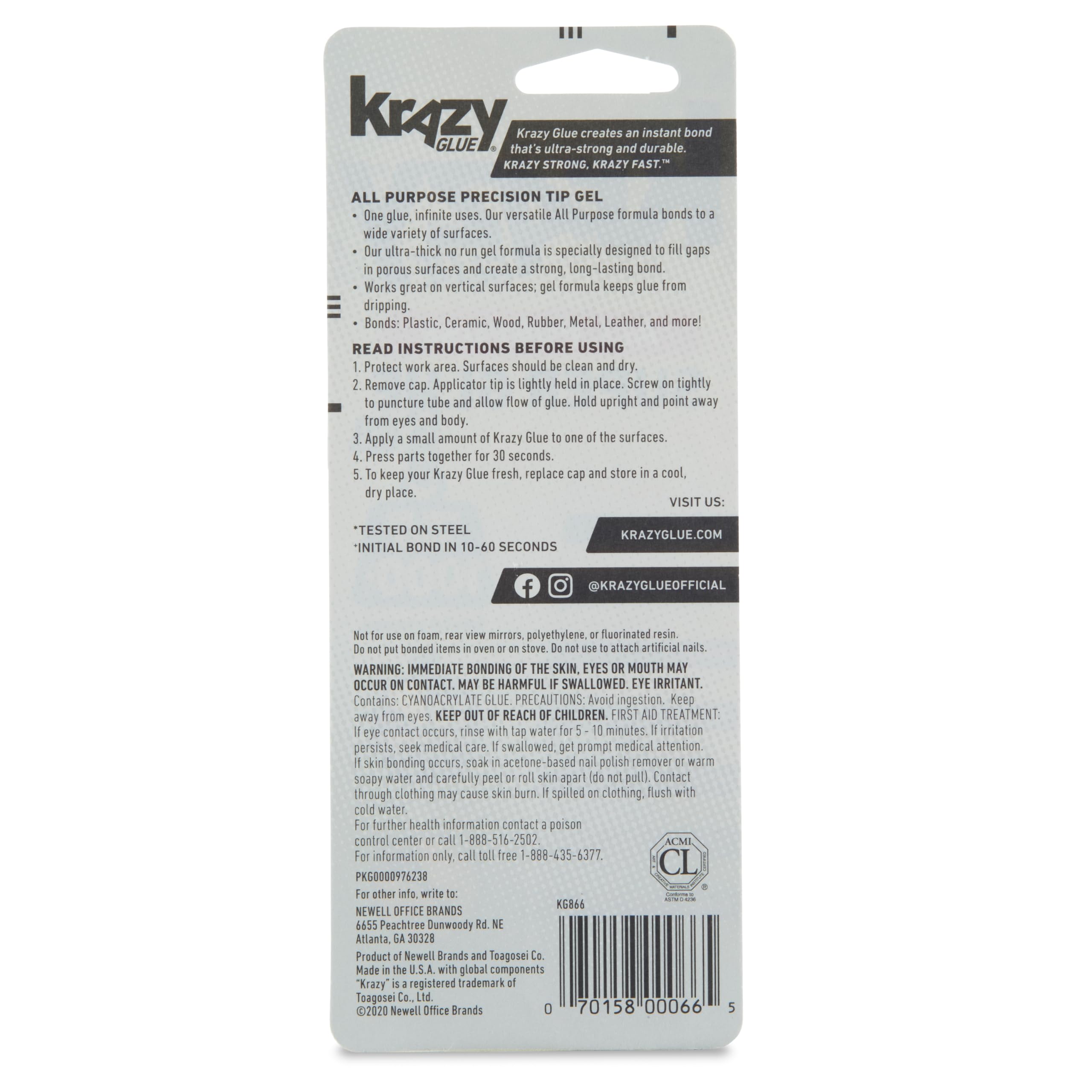 Krazy Glue All Purpose formula is the perfect super glue for everyday repairs and projects The ultra-thick no-run gel is specially designed to fill gaps in porous surfaces glue vertical or mismatched surfaces and create a strong long-lasting bond. Trust it to bond household items like plastic ceramic wood rubber metal leather and more. It comes with a Precision Tip applicator for maximum control as you apply glue. Krazy Glue: America's Super Glue since 1973. Consumers trust the name they know.