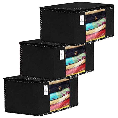 Kuber Industries 3 Piece Non Woven Fabric Saree Cover Set with Transparent Window Extra Large Black-CTKTC31868