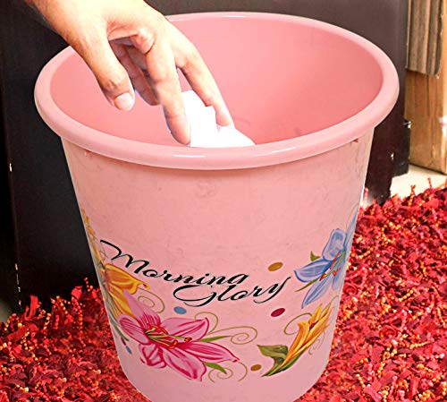 Kuber Industries Flower Print Plastic Garbage Waste Dustbin/Recycling Bin for Home Office Factory 13 litres (Pink)-KUBMART10908