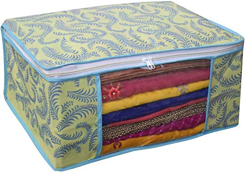 Kuber Industries Metalic Print 6 Piece Non woven Saree Cover Set Green (CTKTC2590)