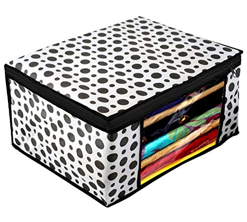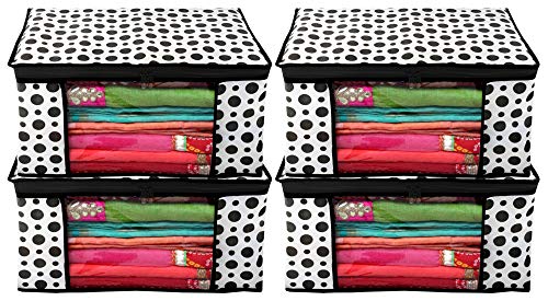 Kuber Industries Polka Dots Design 4 Piece Non Woven Fabric Saree Cover/ Clothes Organiser For Wardrobe Set with Transparent Window Extra Large(Black & White) -CTKTC038088