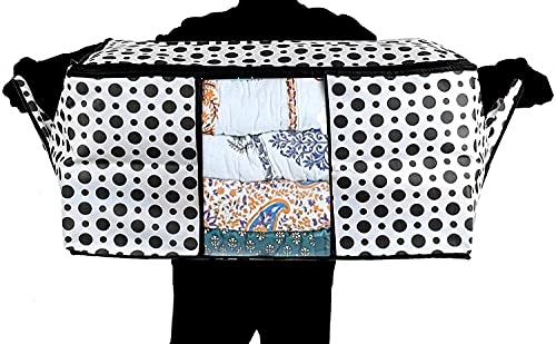 Material: Non Woven Color: Black & White Package Contents: 2 Pieces Underbed Storage Bag Storage Organiser Blanket Cover Size: 65 cm x 45 cm x 31 cm Material: Non-Woven Color: Black & White Made of non-woven material so this is very durable long-lasting and multipurpose. This is used to store blankets clothes quilts coats and other garments for long periods of time