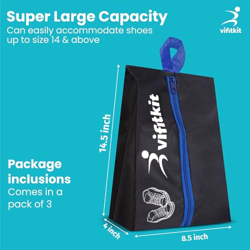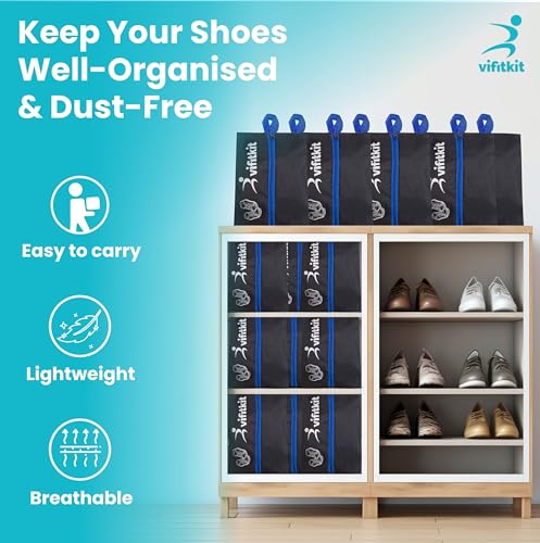 Introducing the Vifitkit Shoe Bag with Zipper a stylish and practical solution to keep your shoe collection well-organised and dust-free. Crafted from durable nylon fabric and designed with smooth zippers the Vifitkit Multifunctional Storage Bag provides the utmost convenience for shoe enthusiasts and frequent travellers. The quick grab handle ensures easy access and portability allowing you to carry your favourite pairs with ease. With a super-large capacity that accommodates shoe sizes up to 14 and above the versatile Vifitkit Shoe Bag Pouch for Travel is also suitable for a wide range of products keeping your accessories for men organised and protected. Its breathable dust-proof and odourless material guarantees that your shoes remain fresh and free from unwanted scents. Stain-resistant and lightweight the Vifitkit Shoe Cover is the perfect companion for those who appreciate both style and practicality making it effortless to zip it up and keep it neat! The Vifitkit Travel Essential Shoe Cover for Storage with Zipper is your go-to solution for maintaining an organised and dust-free shoe collection. Its high-quality construction convenient features and generous capacity make it an excellent choice for those seeking a sleek portable and versatile shoe storage solution. Trust Vifitkit to keep your shoes and bags in perfect condition so you can zip it up and keep it neat wherever you go!