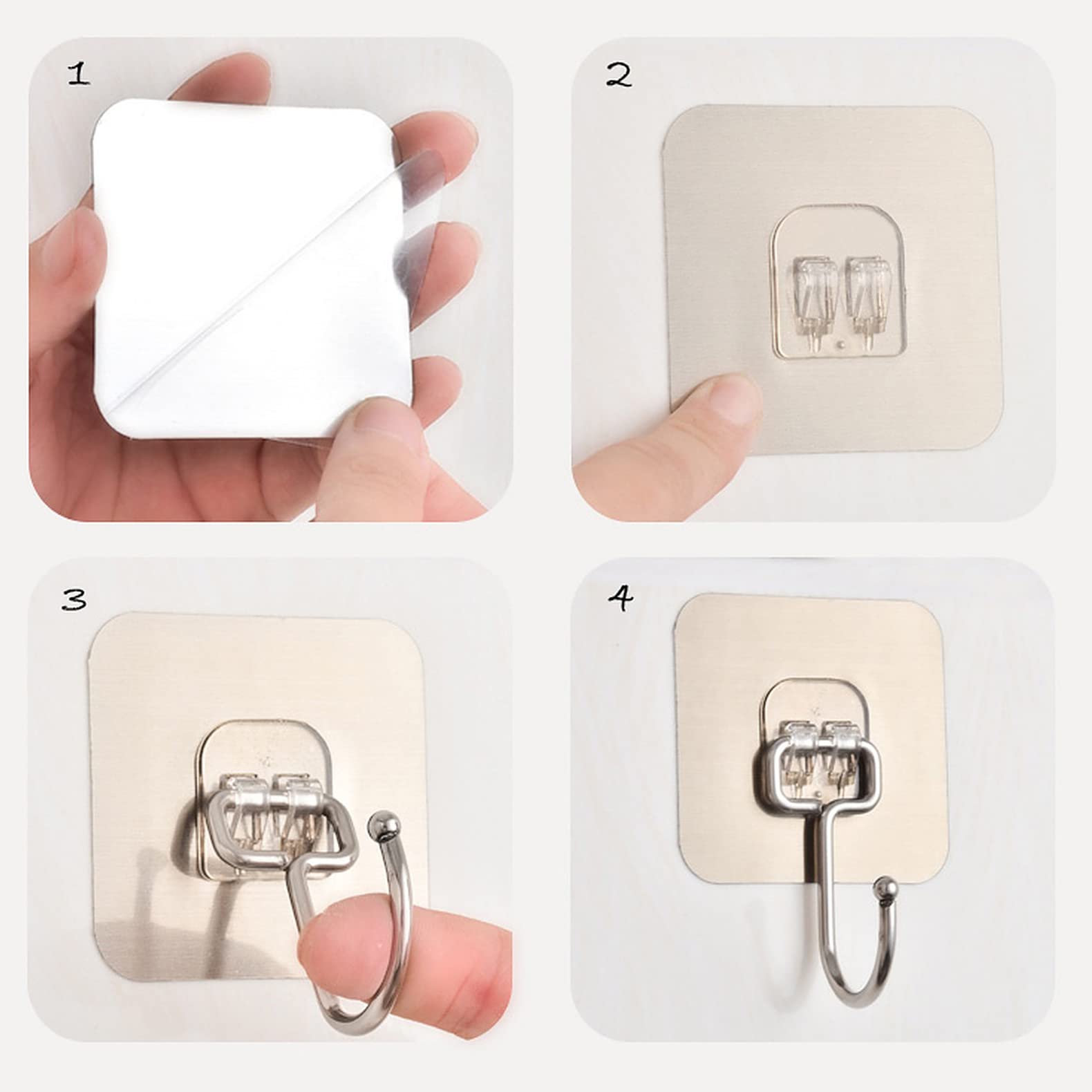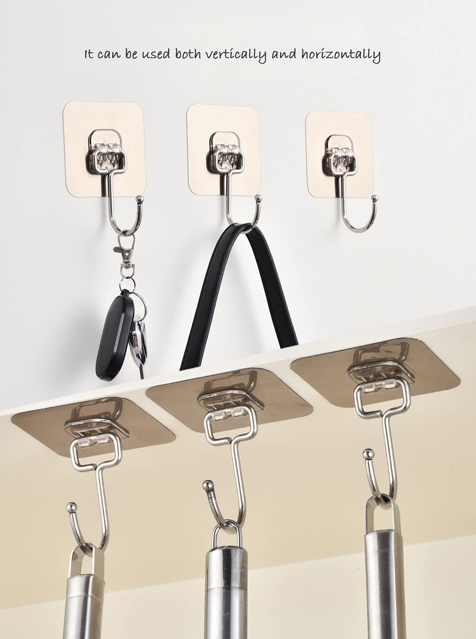 HOME ORGANISATION RUSTPROOF: MULTI-USE: These self-adhesive waterproof hooks are durable & corrosion-free. It will help you organise the clutters & make your home living room bathroom kitchen neat and tidy. Can be stuck on a smooth and polished surface like ceramic tiles glass stainless steel and mirror.