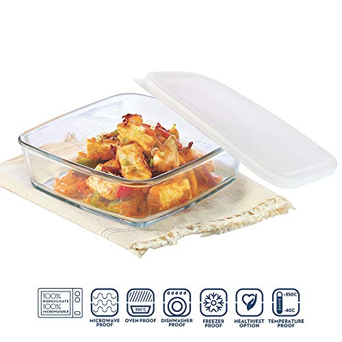 Borosil - Oval Baking Dish 700 ml TransparentThe oval dish is perfect for baked dishes lasagnas raviolis au gratins pulaos sabzis and items such as rasmalais rasgullas gulabjamuns and dahibadas which are best spread out flat. Usage & Care: Do's & Dont's - Can be used in a microwave or electric oven. Not for use over direct flame pre-heat convection oven before use for best results do not put the hot dish on a or wet surface allow the hot dish to cool slightly before adding any liquid to the food allow dishes with very hot food to reach room temperature before putting it into the fridge/freezer do not use abrasive cleaners to ensure that glass stays scratch-free do not use plastic lids in the microwave.Borosil Square Dish with Lid Storage 1.6 litresYou demand the best of yourself so it's only right you enjoy the best from us. Famous for high quality and performance we pour all our experience into creating beautifully designed practical products like our trendsetting range. Strikingly elegant in every table setting every piece helps transform simple gatherings into stylish occasions. Making whatever you're doing simpler smarter and better. As dependable as they are desirable you can trust our products always to perform beautifully.Borosils Square Dish with a microwave safe Lid has been designed keeping you in mind. Cook at your convenience cover it with the lid so you dont have to worry about anything falling into the food and then reheat when youre ready to eat. The lid keeps the gravy from splashing and dirtying the insides of the microwave. Usage and Care Every Borosil Microwavable product that you buy: Is made of Borosilicate glass and is guaranteed to withstand temperatures of upto 300 degree celsius Can be safely used in the microwave oven fridge freezer and dishwasher Unlike plastic will not leech chemicals into your food even over repeated usage Non porous glass will not absorb stains or odours Do's and Don'ts Can be used in a microwave or electric oven. Not for use over direct flame Pre-heat convection oven before use for best results Do not put the hot dish on a or wet surface Allow the hot dish to cool slightly before adding any liquid to the food Allow dishes with very hot food to reach room temperature before putting it into the fridge/freezer Do not use abrasive cleaners to ensure that glass stays scratch-free Do not use plastic lids in the microwave