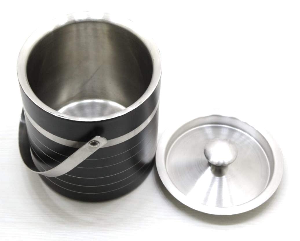 This double-wall ice bucket will add a touch to your barware this stainless steel ice bucket has outstanding looks that create a unique visual appeal. It's a perfect addition for a well-stocked bar. Made from 100% Stainless Steel making them highly durable and resistance to corrosion. It's a perfect accessory to a well-stocked bar. Dimensions : 15.3 X15.3X 15.5 cm Capacity : 1600 ml Weight :740g Tong dimensions= 16 X 1 X 3 cm Tong Weight: 30 g.
