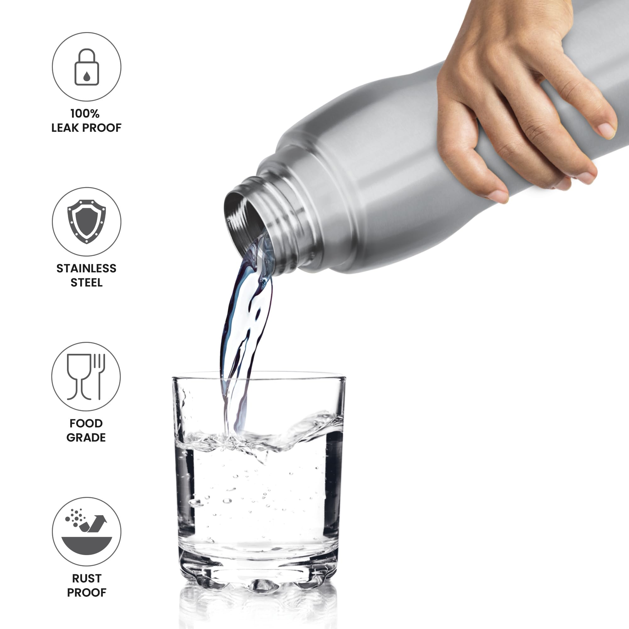 Color: Silver; Material: Stainless Steel; Package Content: 6 - Pieces Elate Water Bottle (635 ml Each); For any queries kindly reach customer care number as mentioned on the product packaging along with the proof of purchase