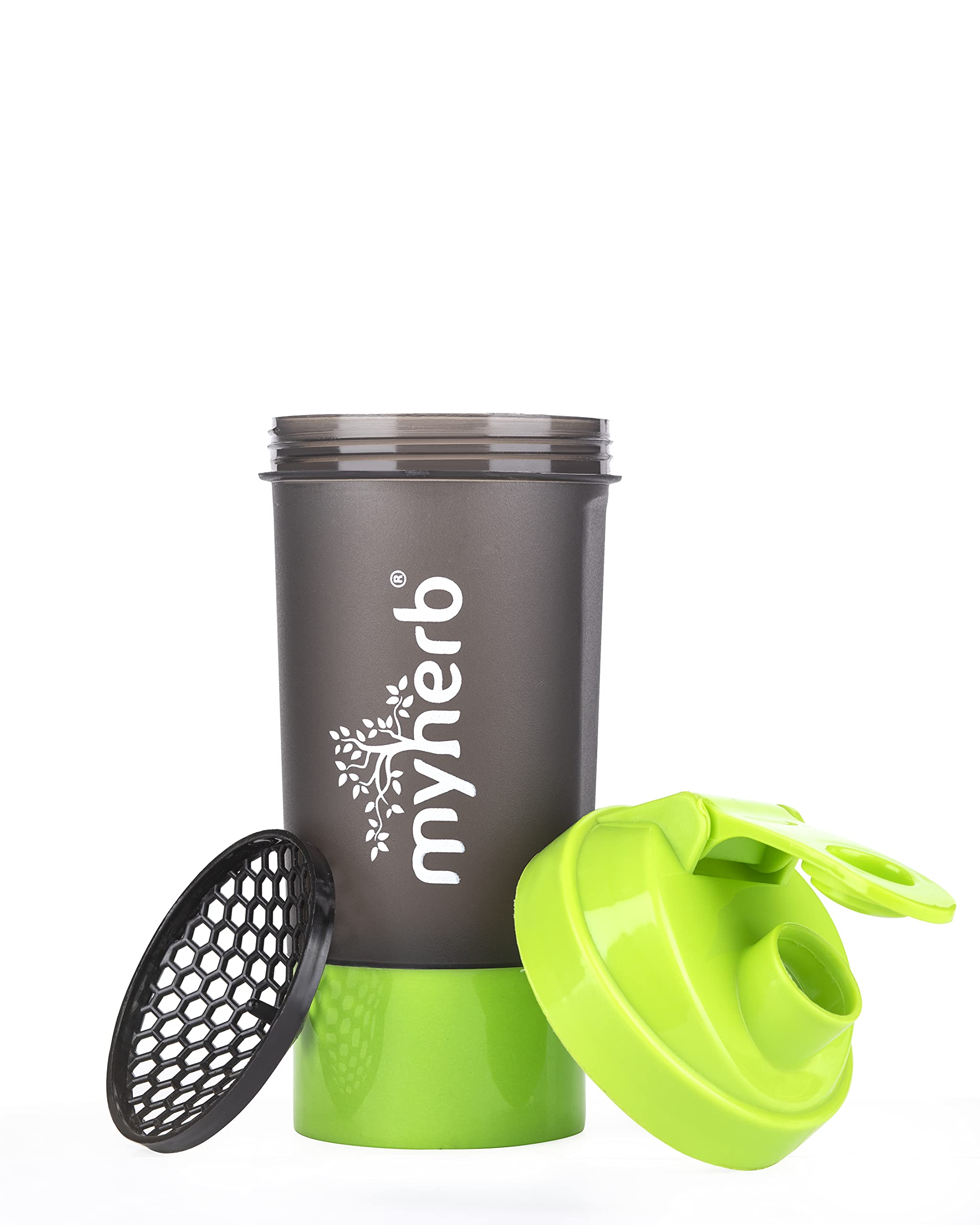 Myherb BPA-Free 100% Leak Proof Guarantee Including Tornado Blender Gym Shaker Bottle - 500 ml /24oz- Green + Black Color
