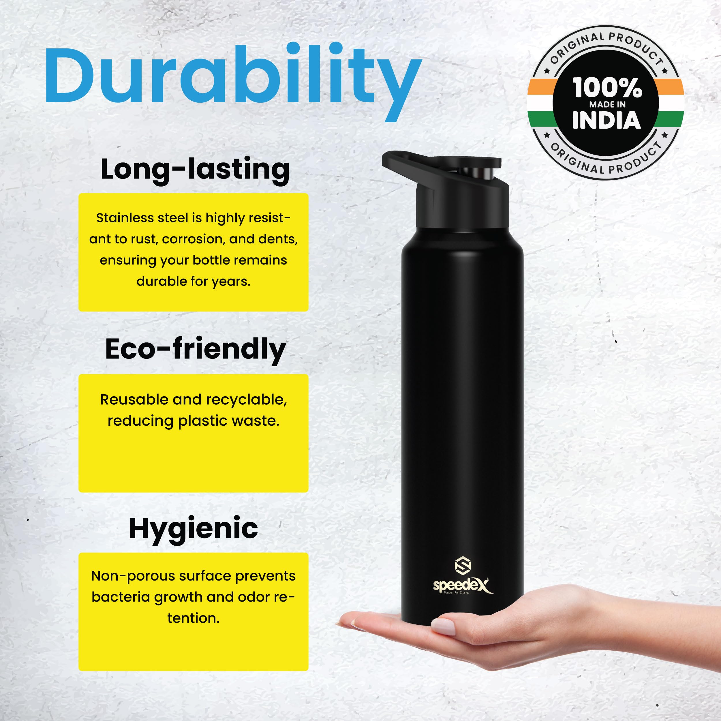 HomeKitchenContainersBottlesSpeedex Water Bottle 1 Ltr Black Stainless Steel 1 Litre Sipper Cap Bottles for Girls Boys Adults & Kids Gym Sports Fridge Use School & Office - 1 Bottle Set 1000 ml