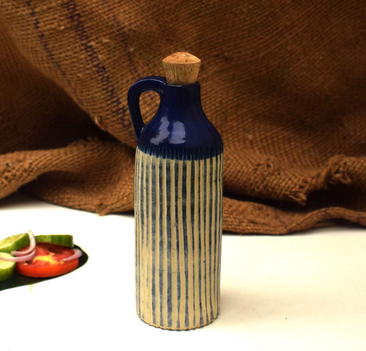 Add a touch of continental charm to your table with a glazed stoneware oil bottle. Perfect for serving homemade salad dressings or drizzling vinegar on chips. It sits pretty on your dining table or your kitchen counter.