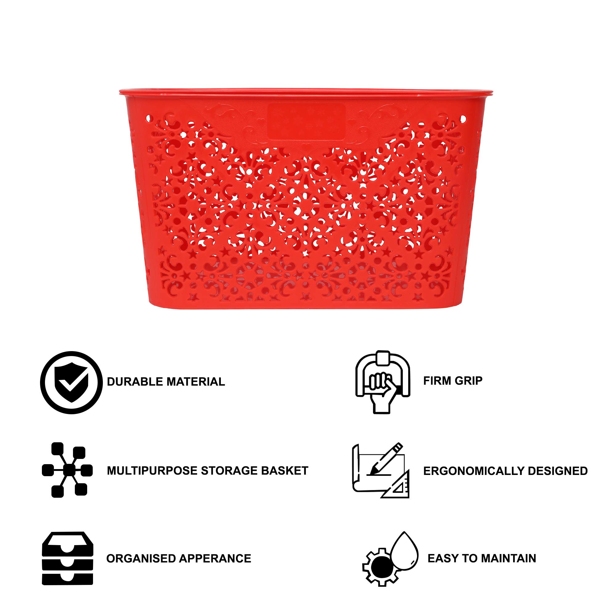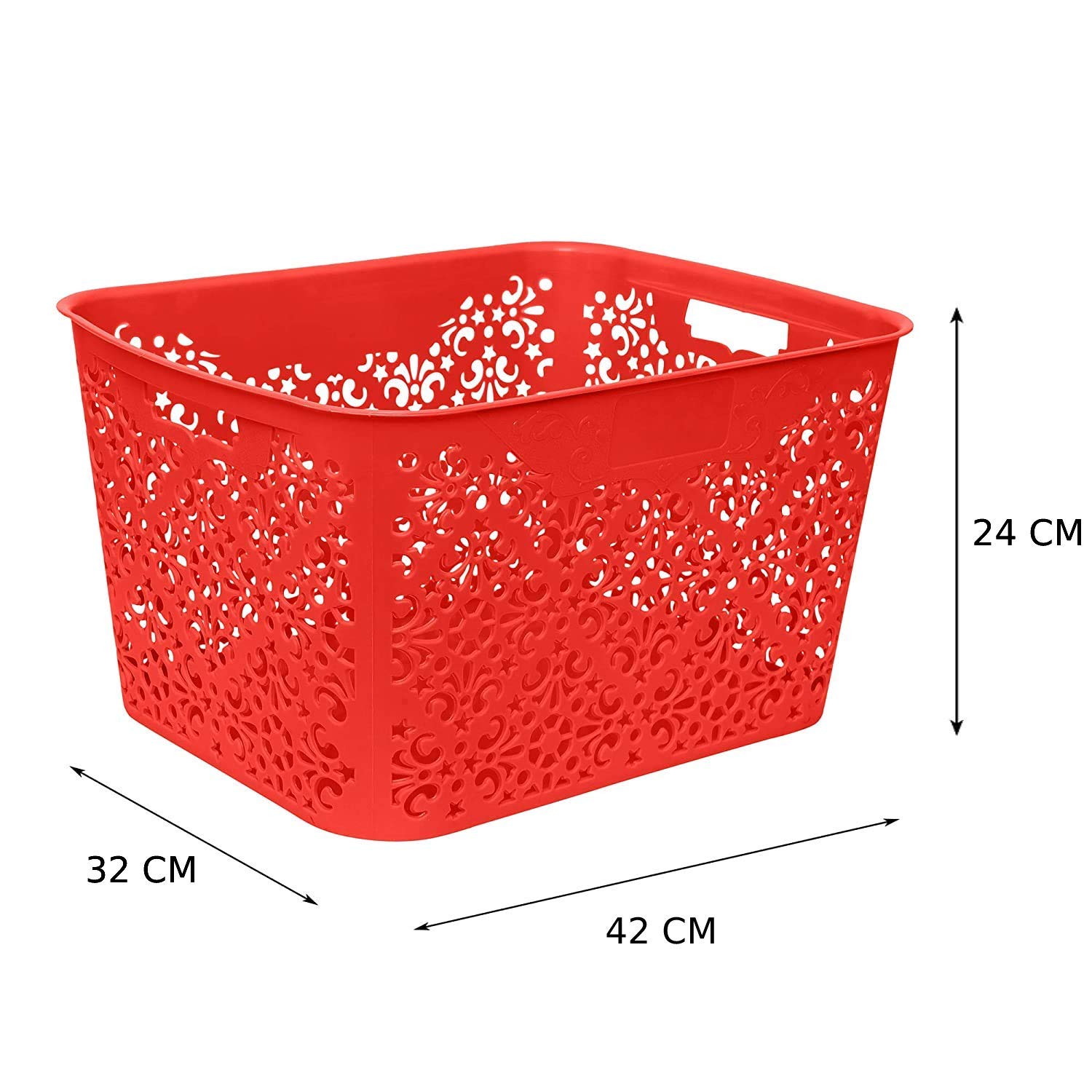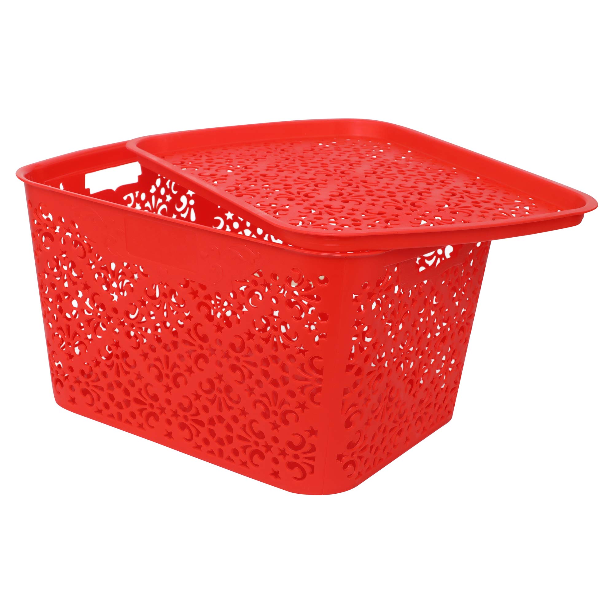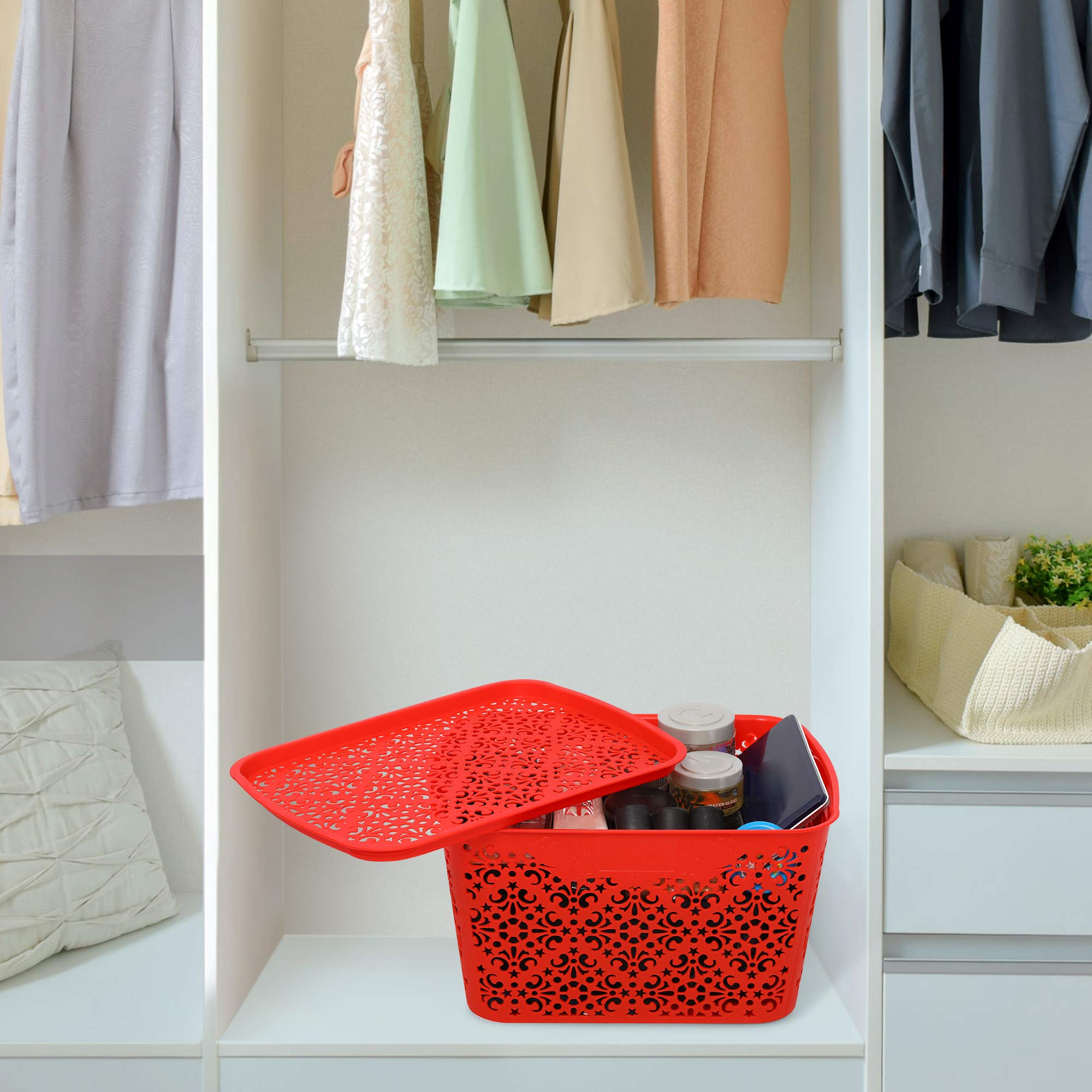 HomeKitchenContainersJars & ContainersCutting EDGE Unbreakable Plastic Turkish Baskets Large with Lid for Storage Baskets For Fruit Vegetable Bathroom Stationary Home Basket with Handle - Red, Set of 4