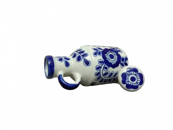 TRADITIONAL DESIGN - Deserve sitting on your kitchen counter/self KHURJA POTTERY olive oil dispensers is complemented by modern functionality and convenience. It is finished with a painted glaze and topped with a ceramic cap.