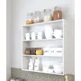 Simple and finished in a white colors of modern design schemes. Contemporary design spice rack will organize and save space for your kitchen pantry bathroom or closet in style. 4 tier wall mount spice rack is a space saving essential for your kitchen pantry or cabinets! The open wire design allows you to see each item helping you locate what you need quickly. The jars will being prominently placed on a multi-level rack so the name tag can be observed. 4 tier large capacity accommodates organizing all your favorite spices conveniently keep your kitchen more tidy and neat.Made of sturdy engineered wood constructionmore sturdy and beautiful.Perfect for organizing the spiceseasoningtea coffee condiments and more kitchenpantrycloset .Alternatively use it in the bathroom to hold vitamins medicine cosmetics beauty accessories creams lotions and more.