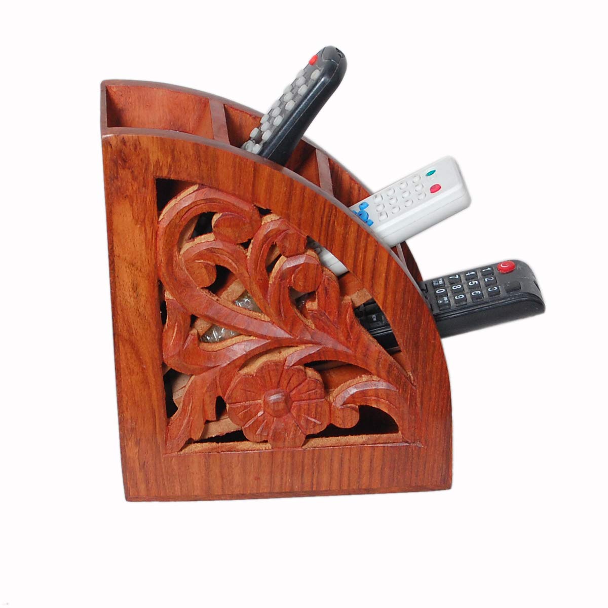 SAHARANPUR HANDICRAFTS Wooden Remote Control Storage Holder Stand Organizer Rack five remot rack