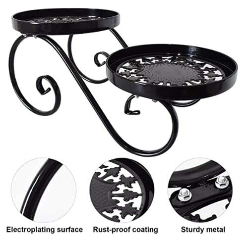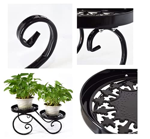 WROUGHT IRON CRAFTS Flower Plant Stand Thicker Flower Rack Plant Stand with Round Pot Supports Hollow Design Wrought Iron Black fit Outdoor/Indoor Decoration (1 Medium)