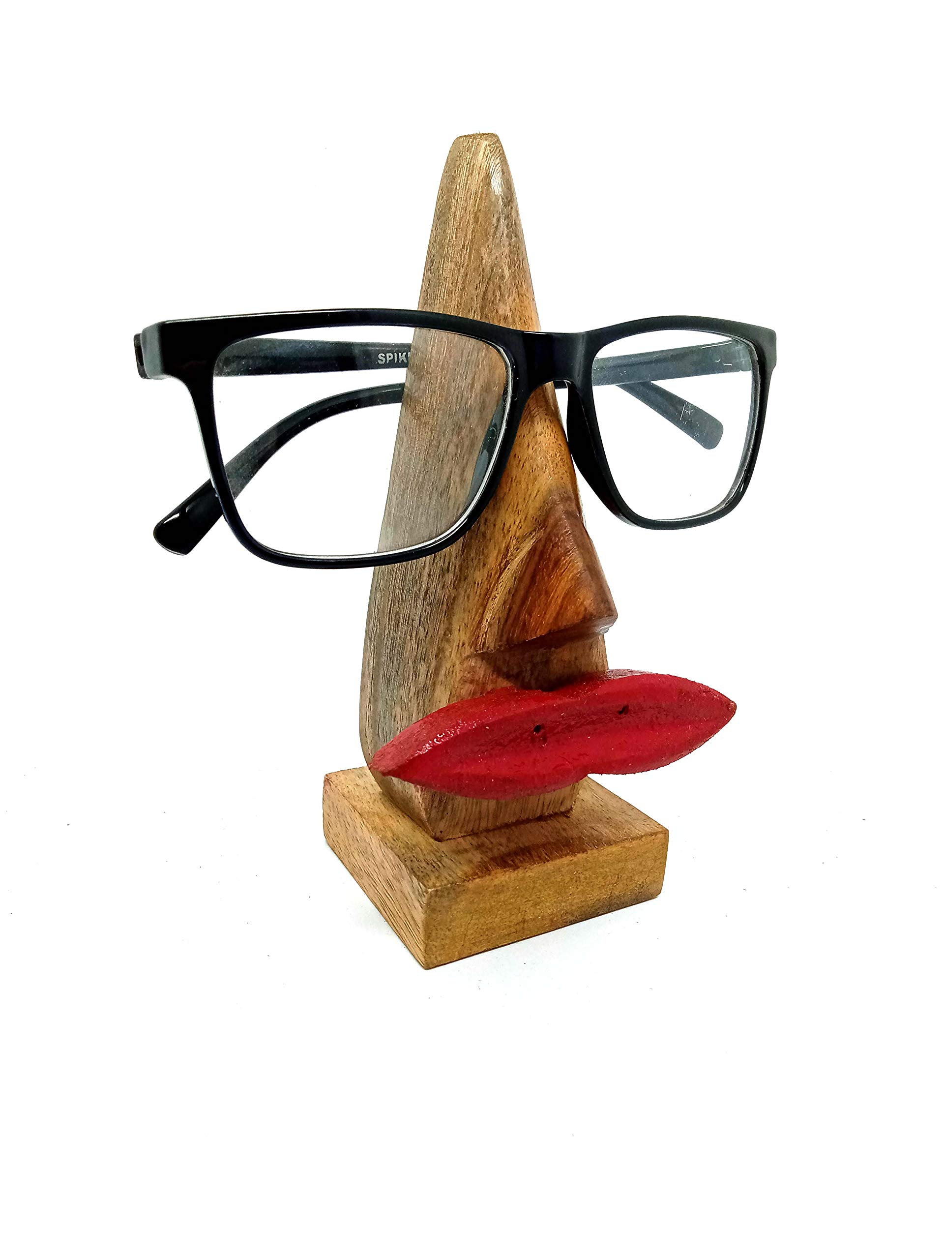 WROUGHT IRON CRAFTS Wooden Hand Crafted Nose Shaped Spectacle Specs Eyegalss Holder with Hat