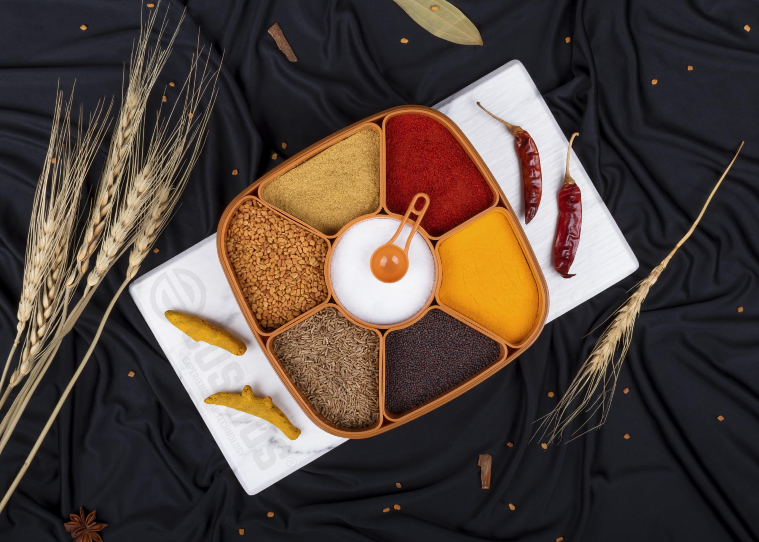 This Separate seven removable cups for storing herbs or spices or dry fruits easy to hold pick up and carry keep spices fresh for long hours Helps Maintain Good Health and Hygiene.