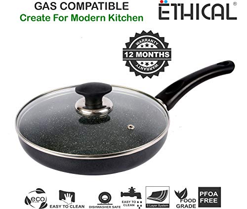 Ethical Mastreo Series Aluminium Black Non-Stick Gas Compatible Fry Pan 22cm with Glass Lid