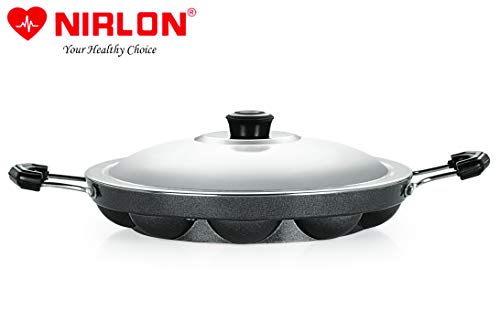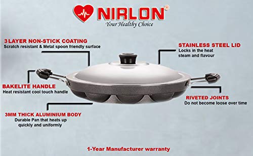 Nirlon Non-Stick 12 Cavity Appam Patra Side Handle with Steel lid