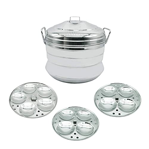 PANCA Idli Maker 3 Plate 13 Idli Cooker, Premium Idli Panai Heavy Weight Idly Cooker, Idli Steamer, Idli Pot- Silver (13 IDLI BIG)