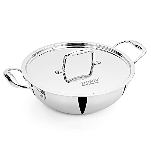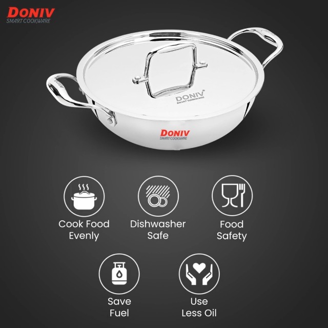 Doniv Titanium Triply Stainless Steel Induction & Gas Compatible Kadhai with Steel Lid - 28 cm / Cap