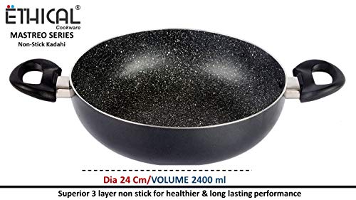 ETHICAL MASTREO:-The features a nonstick coating which allows for lower-fat cooking options-no need for excess butter or oil. Even more the nonstick coating helps prevent cooked food from adhering to the pan; instead food effortlessly transfers to a platter or dinner plate for gracious serving.