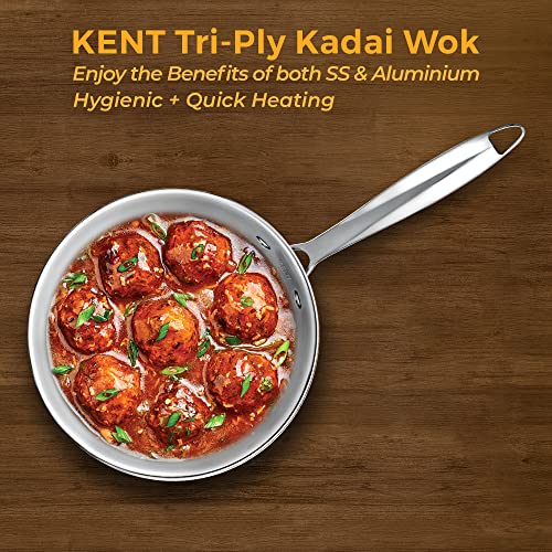 KENT Tri-Ply kadai have a cool touch handle and a glass lid with its help you can cook food quickly. It is perfect for deep frying, stir frying, shallow frying and sauteing. Benefits of both statinless steel and aluminum are in one cookware. Its spreads heat uniformly and prevents from sticking and burning