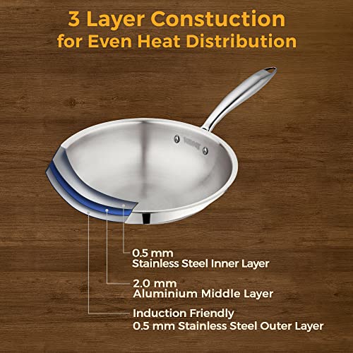 I was a bit spectative about the quality of this product when compared to the price of it, and it stood up to my expectations. The triply layer in this kadhai wok is a game changer and works very well. Overall satisfied with the product.