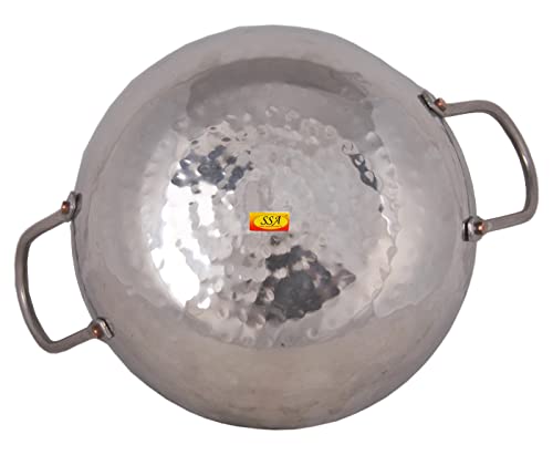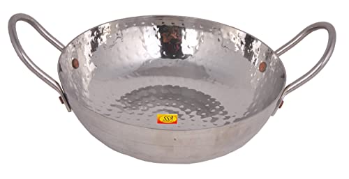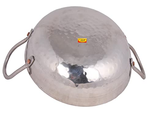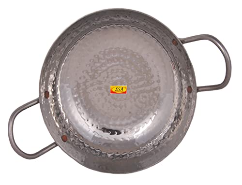 Shiv Shakti Arts® Multi Utility - Heavy Gauge - Stainless Steel Kadhai with Riveted Handle for Serving & Cooking Food in Home Hotles & Resturants(No.10 | 1500 ml - Hammer Design)