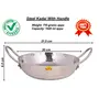 • Highly Durable Pure Stainless Steel Kadhai With handle No 10 = Dimension => 6.5 x 30cm (Height x Width) Capacity - 1500 ML Weight - 710 Gm Approx = Diameter Of Top - 21.5cm Width With Handle - 30. cm.